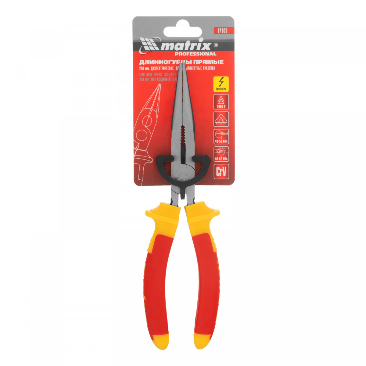 Длинногубцы прямые Insulated, 200 мм, двухкомпонентные рукоятки Matrix Professional