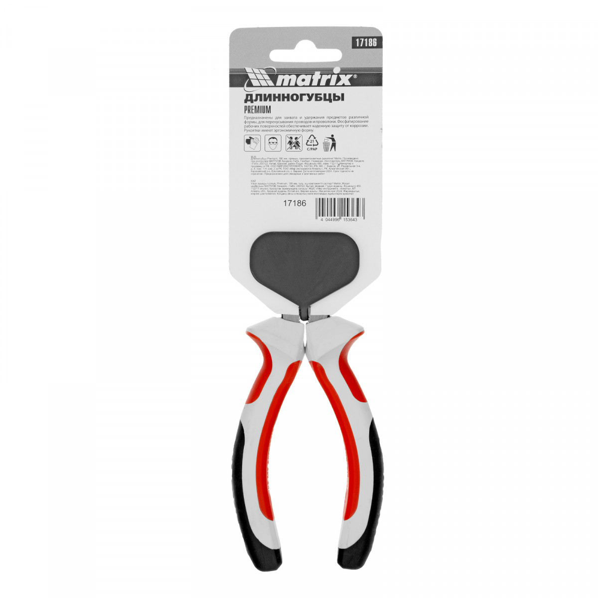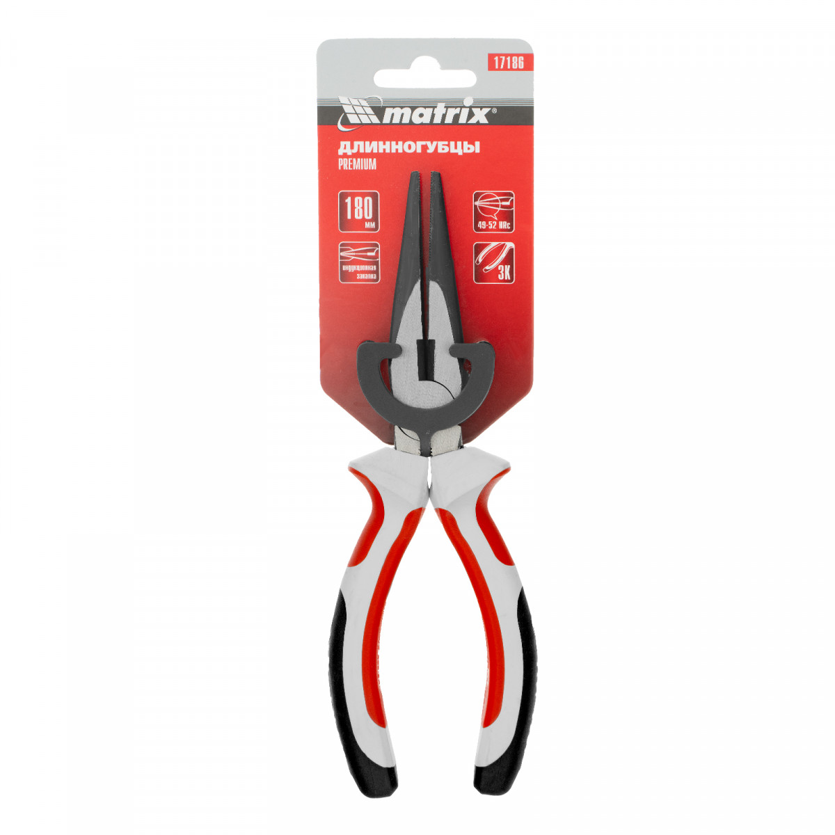 Длинногубцы прямые Premium, 180 мм, трехкомпонентные рукоятки Matrix