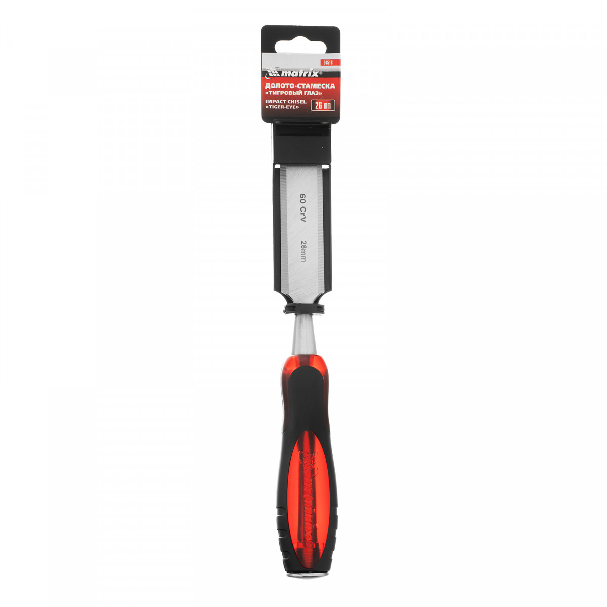 Долото-стамеска Matrix «Тигровый глаз» 24518 с полотном шириной 26 мм и двухкомпонентной обрезиненной рукояткой используется в столярном и плотницком деле, в производстве мебели. Позволяет вырезать углубления, формировать пазы, зачищать шипы и гнезда, снимать фаски. Инструмент выдерживает удары киянкой или молотком, т. к. металлический затыльник защищает его от деформации. Долото относится к профессиональному ручному инструменту, но может применяться и в домашних условиях.