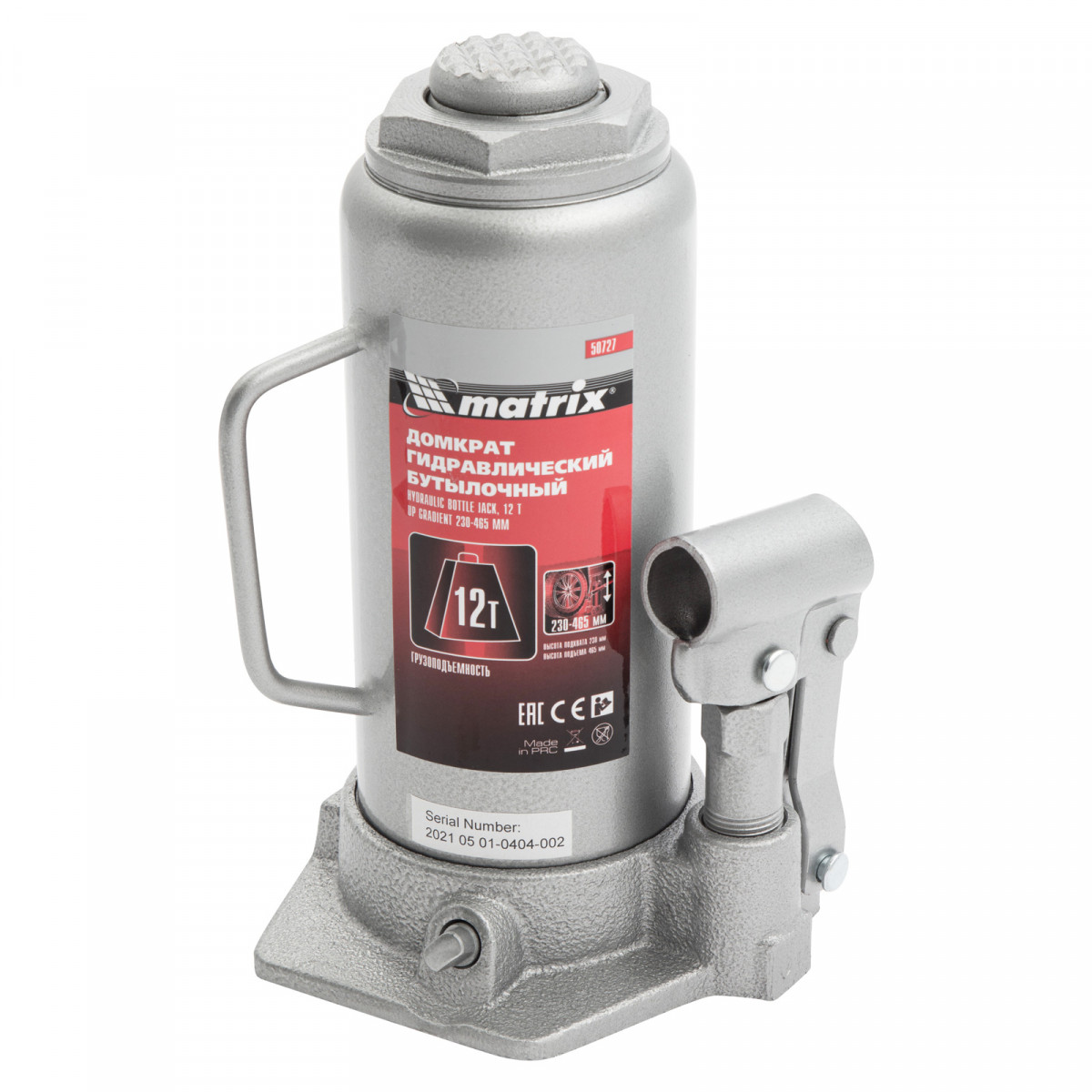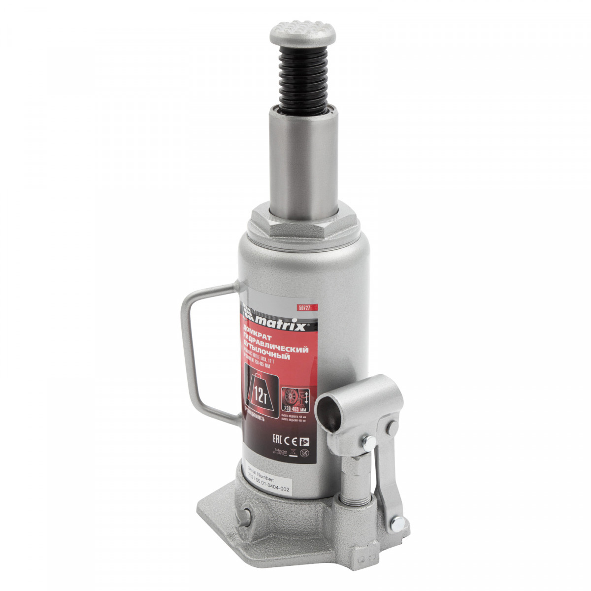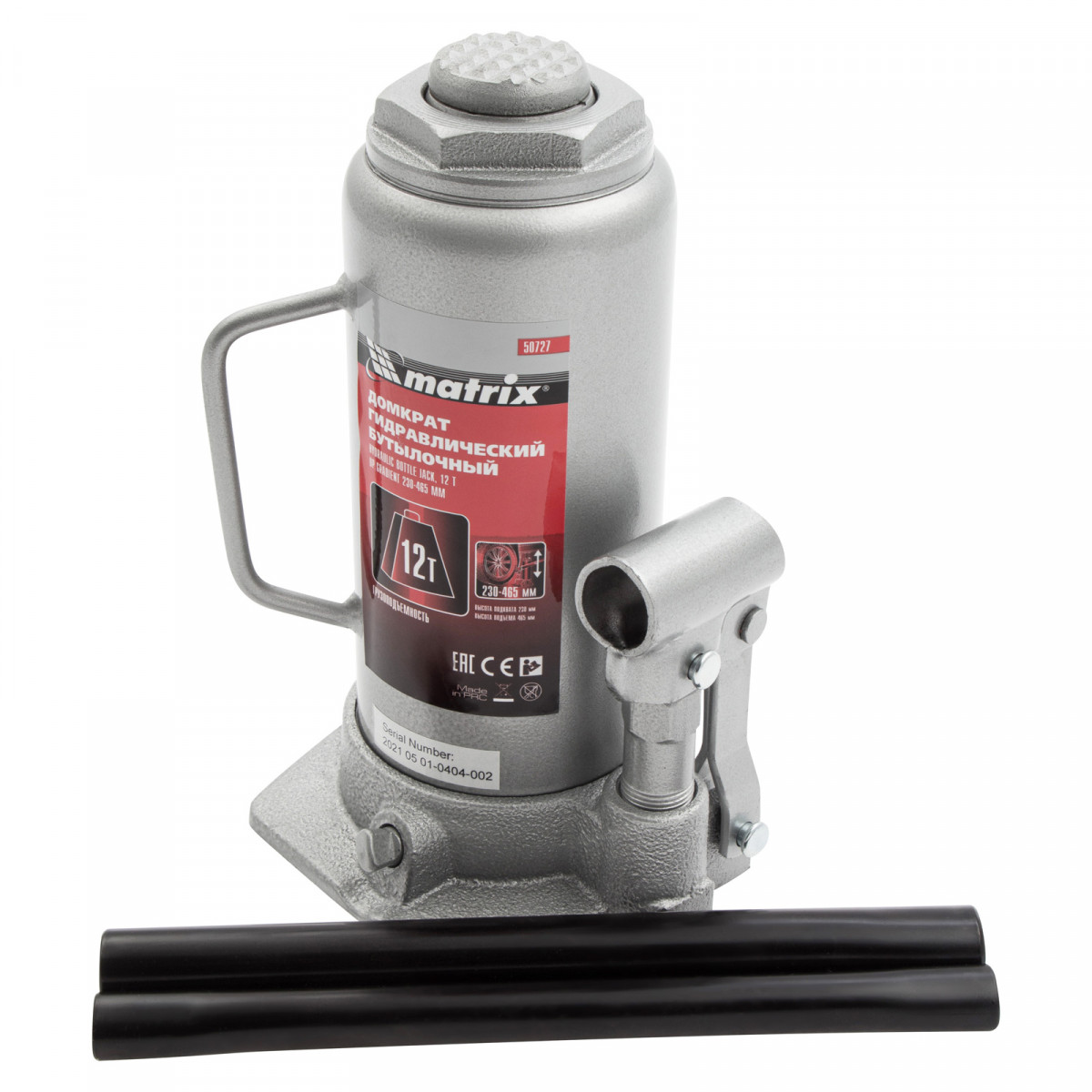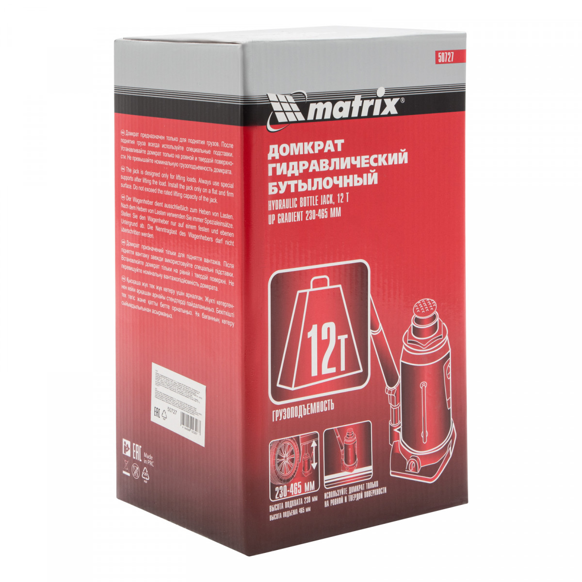 Домкрат гидравлический бутылочный, 12 т, высота подъема 230-465 мм Matrix