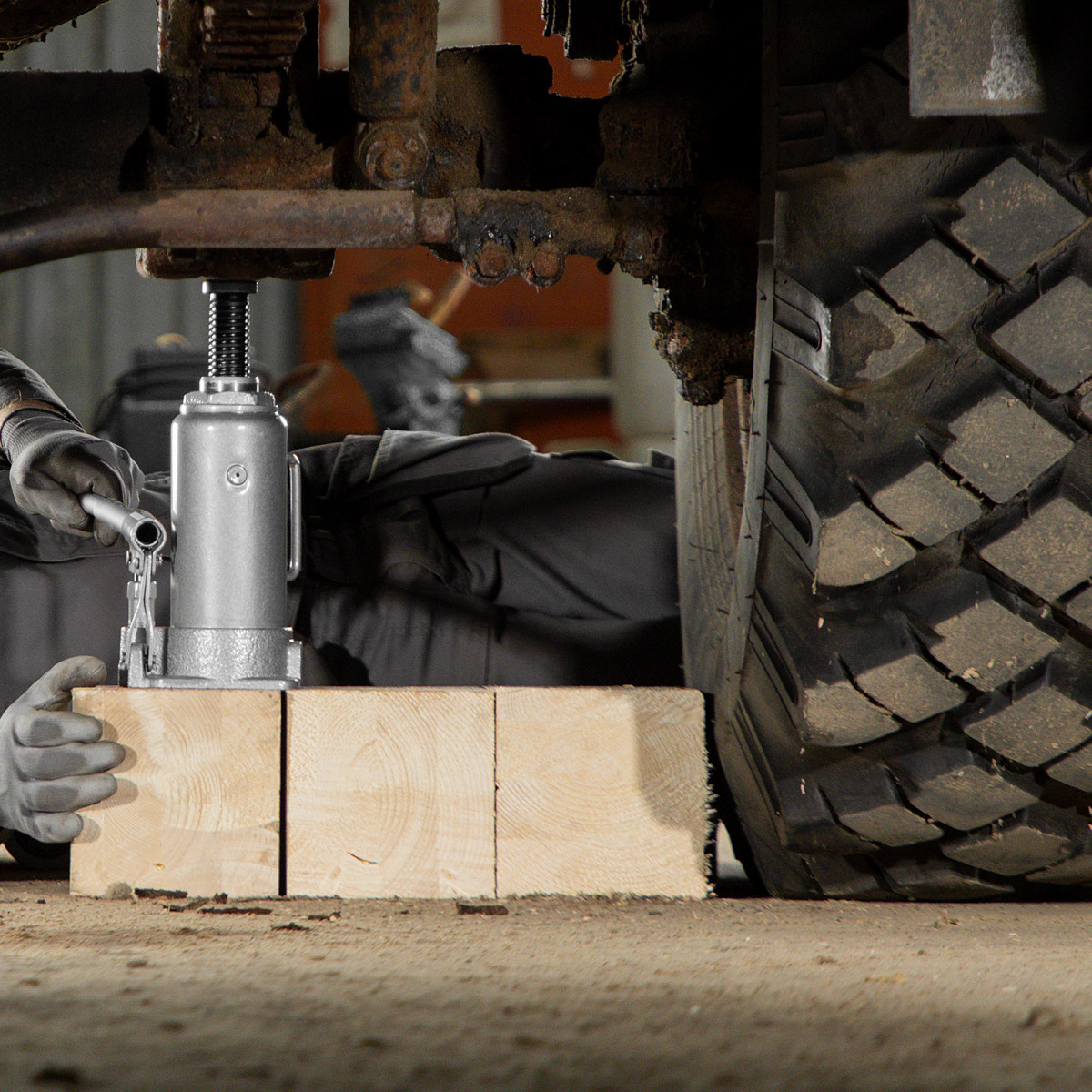 - Высококачественное всесезонное масло — домкрат безотказно работает в широком диапазоне температур (от -20 до 45 ℃).