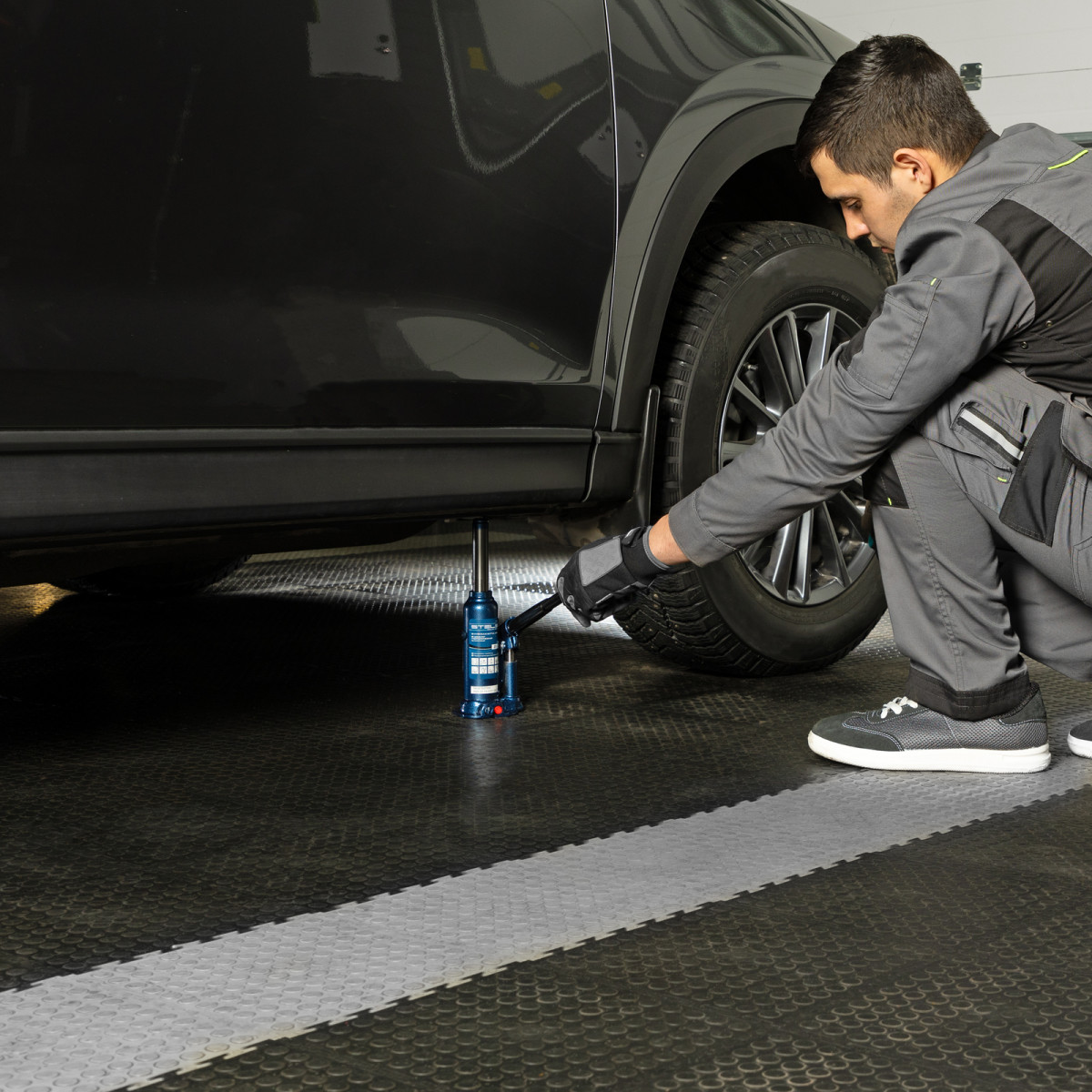 - Удобное хранение и транспортировка — домкрат поставляется в пластиковом кейсе.