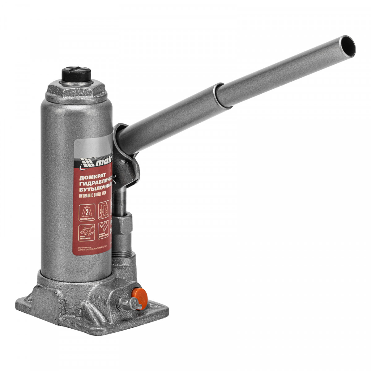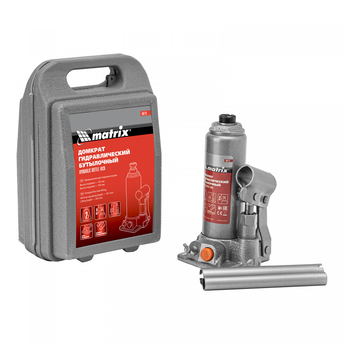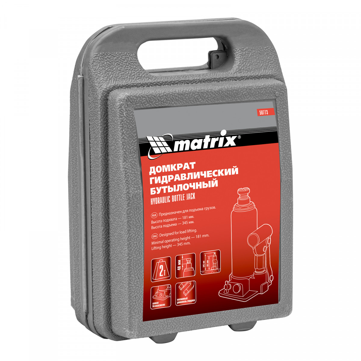Домкрат гидравлический бутылочный, 2 т, h подъема 181-345 мм, в пластиковом кейсе Matrix