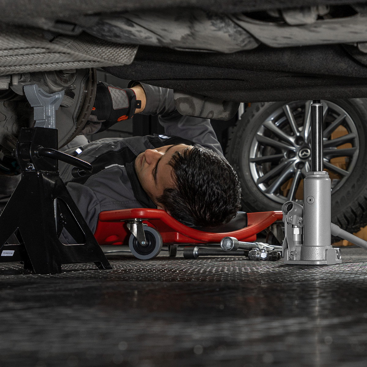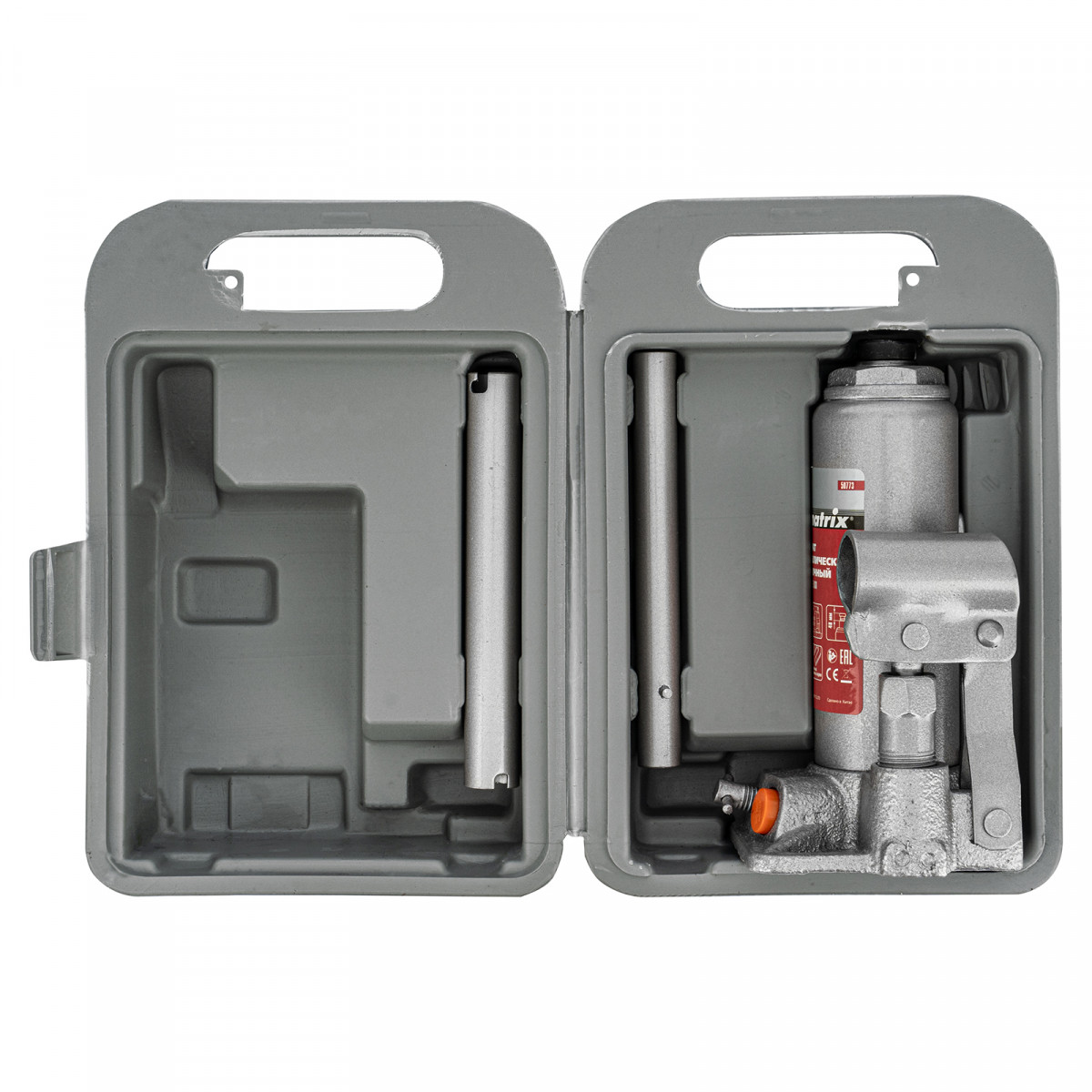 - Удобная транспортировка — домкрат комплектуется прочным пластиковым кейсом.