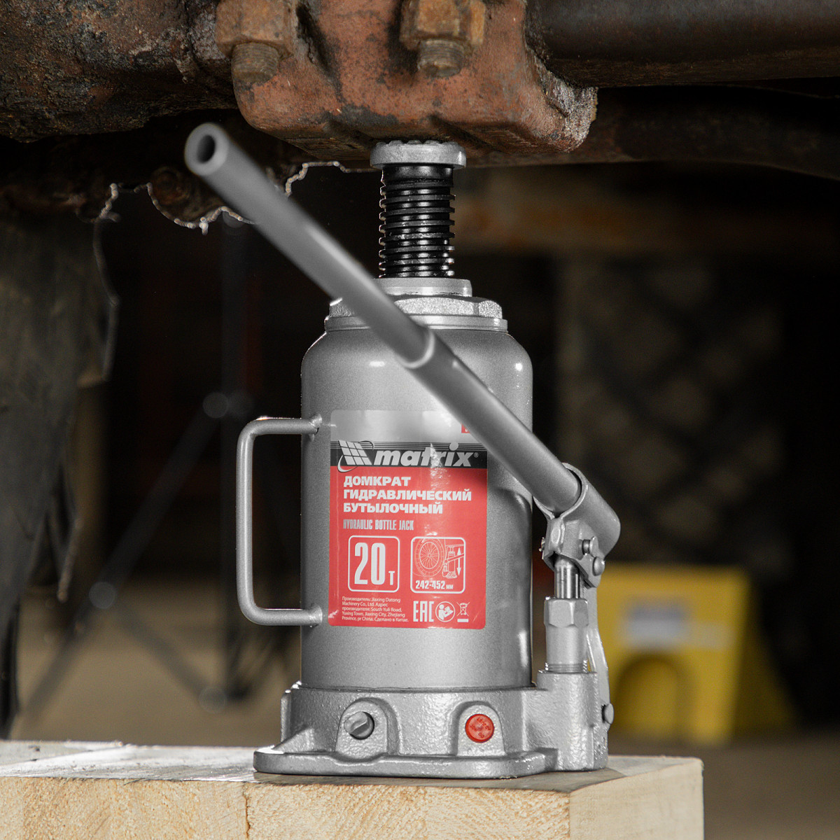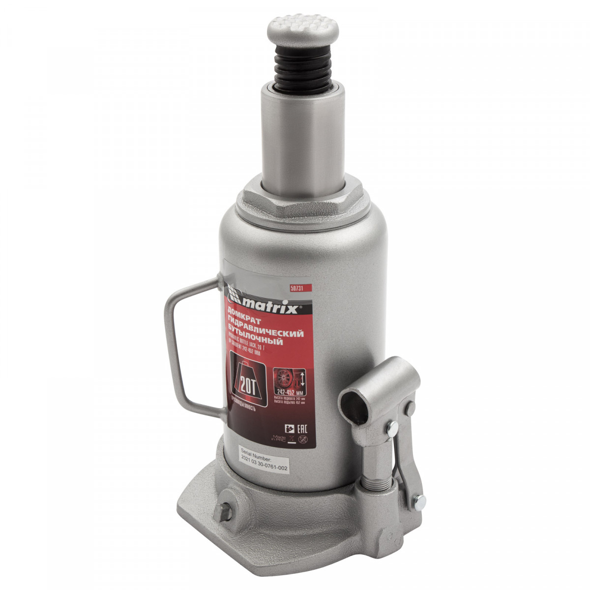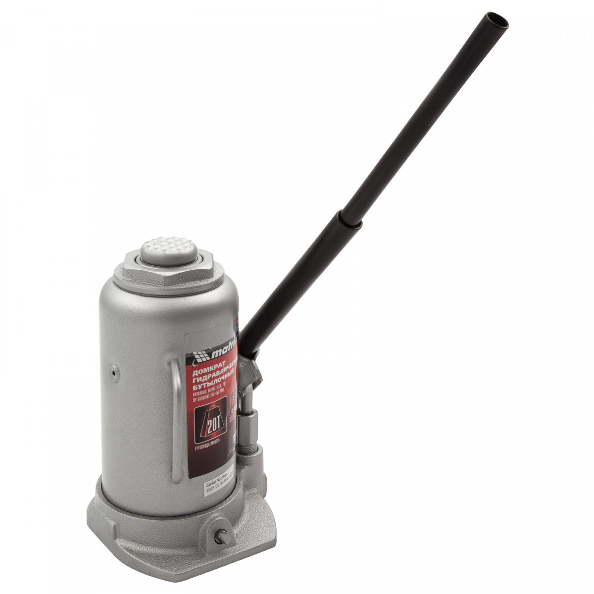 Домкрат гидравлический бутылочный, 20 т, высота подъема 242-452 мм Matrix