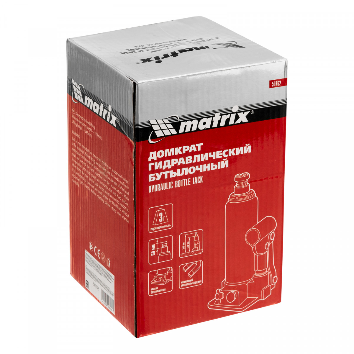Гидравлический бутылочный домкрат Matrix 50762 предназначен для быстрого поднятия грузов массой до 3 т на высоту 178-343 мм. Будет полезен автолюбителям и мастерам СТО в качестве полупрофессионального инструмента. Встроенный магнитный уловитель металлической стружки защищает резиновые уплотнители от повреждений.