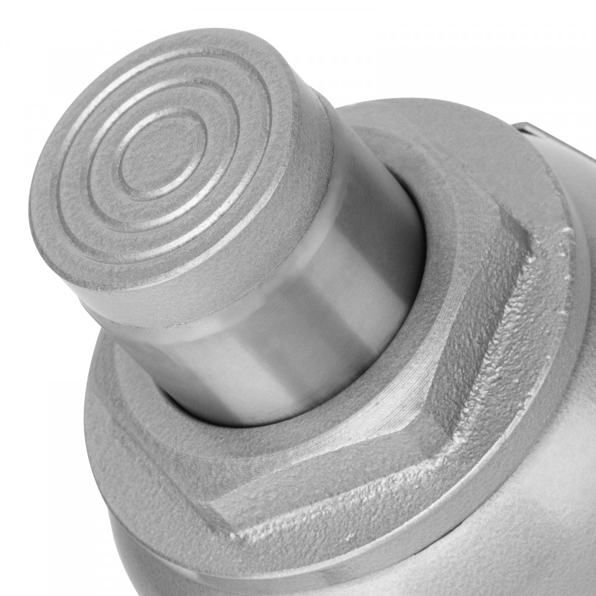 - Надежная конструкция — домкрат имеет устойчивое чугунное основание, корпус из высокопрочной стали, а также полированный шток, увеличивающий срок службы.