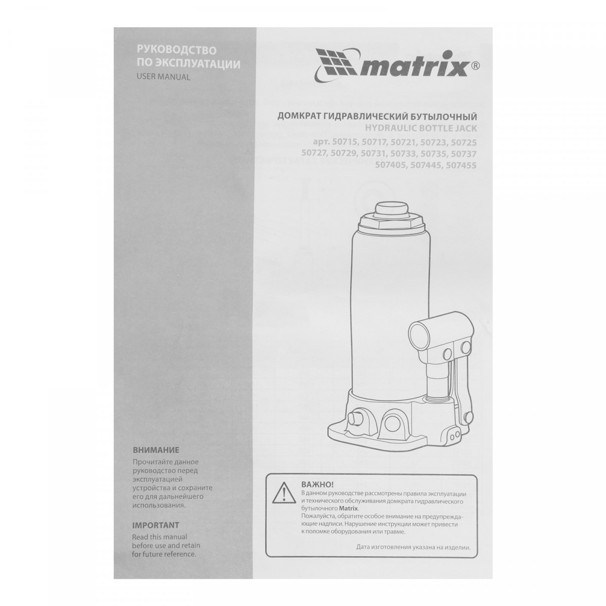 Домкрат гидравлический бутылочный Matrix 50735 используется для поднятия грузов массой до 30 т на высоту 240-370 мм. Подходит для автомобилей с высоким клиренсом. Домкрат будет полезен автолюбителям в гараже и дороге, а также сотрудникам СТО.