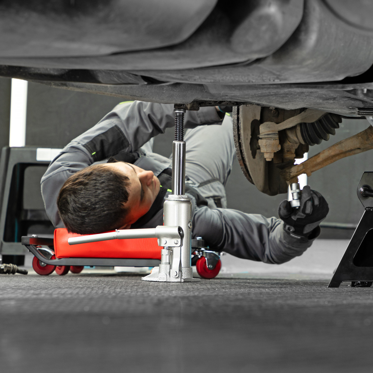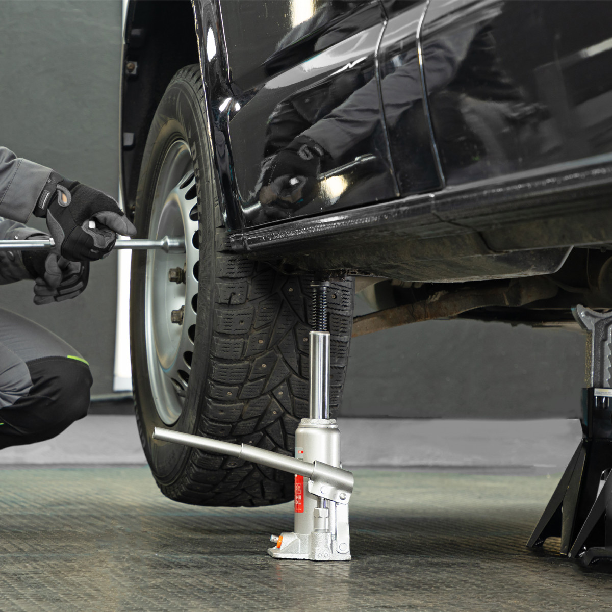 - Удобная транспортировка — домкрат весом 3,25 кг легко помещается в багажник авто.
