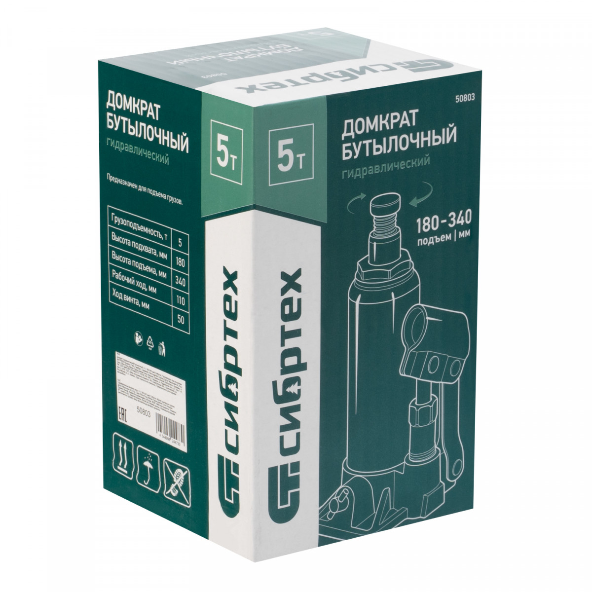 Домкрат гидравлический бутылочный Сибртех 50803 предназначен для подъема грузов массой до 5 т на высоту от 180 до 340 мм. Не требует больших усилий от пользователя и значительно облегчает рабочий процесс. Домкрат будет полезен при проведении техобслуживания машины в автосервисе или гараже.