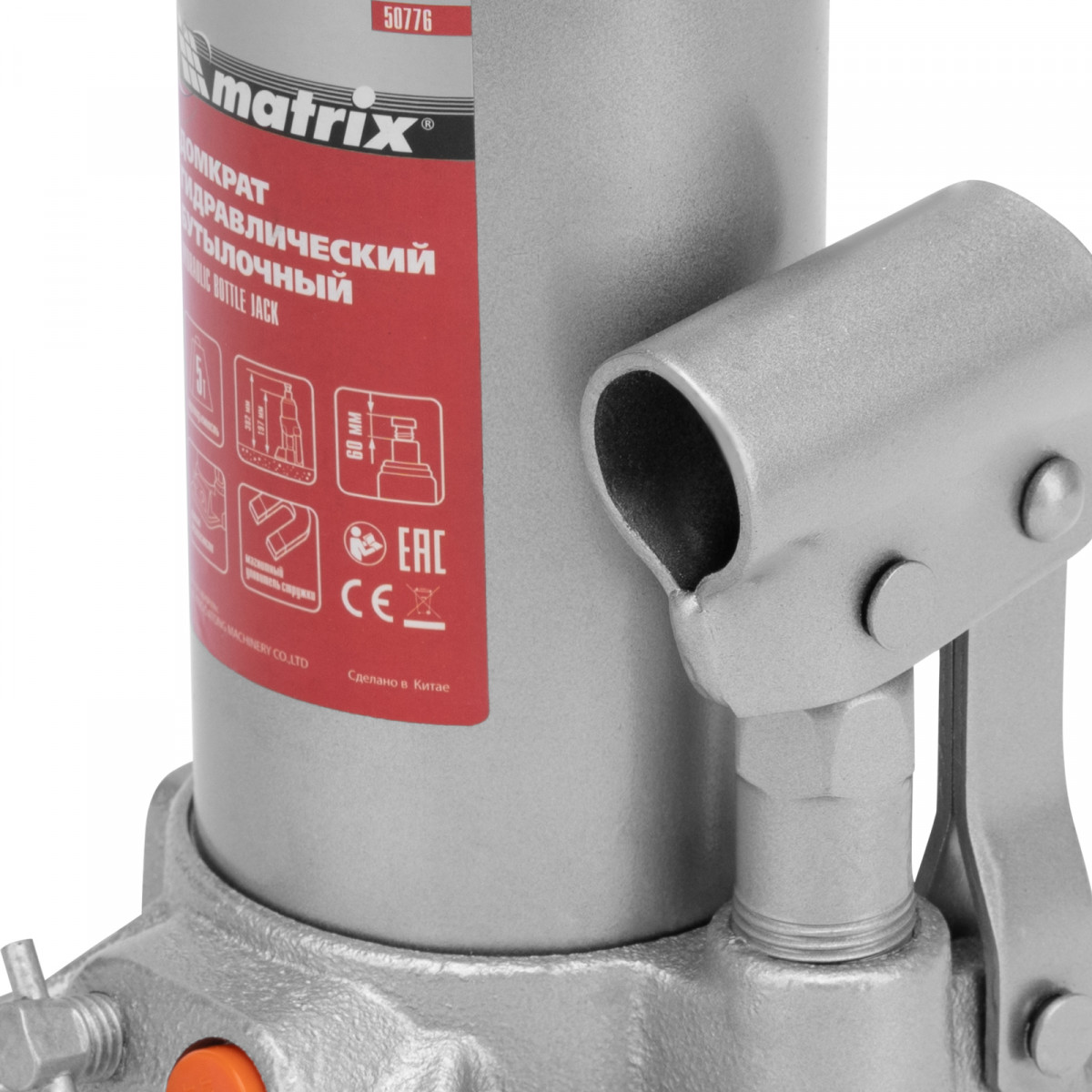 Домкрат гидравлический бутылочный, 5 т, h подъема 197-382 мм, в пластиковом кейсе Matrix