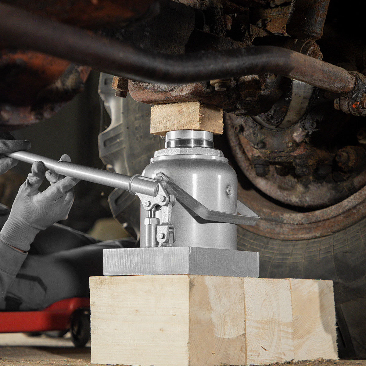 - Высококачественное всесезонное масло — домкрат безотказно работает в широком диапазоне температур (от -20 до 45 ℃).