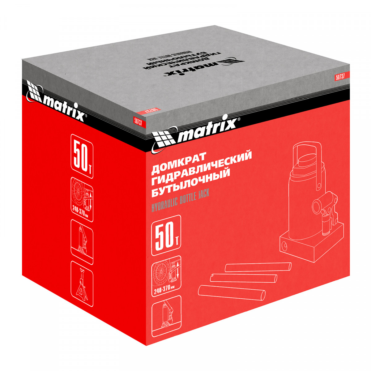 Домкрат гидравлический бутылочный, 50 т, высота подъема 240-370 мм Matrix