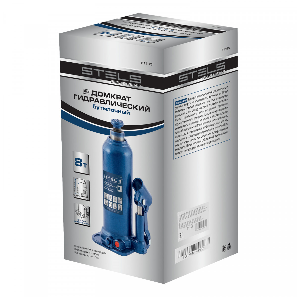 Гидравлический бутылочный домкрат Stels 51165 применяется для быстрого поднятия грузов весом до 8 т на высоту 222-447 мм. Оптимален для автомобилей с большим клиренсом. Домкрат будет полезен автолюбителям и профессионалам для ремонта транспортного средства.