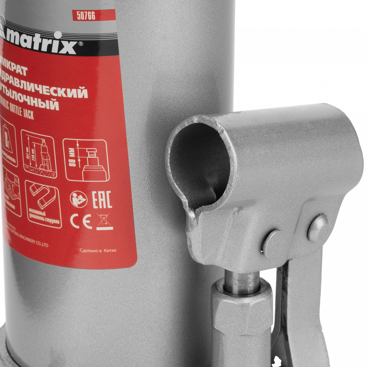 Домкрат гидравлический бутылочный, 8 т, h подъема 230-457 мм Matrix