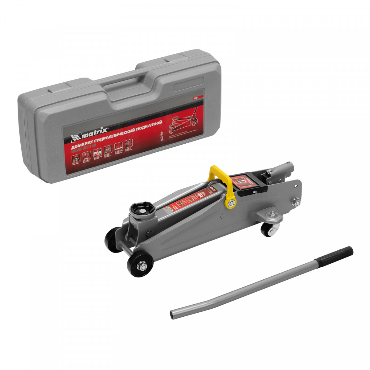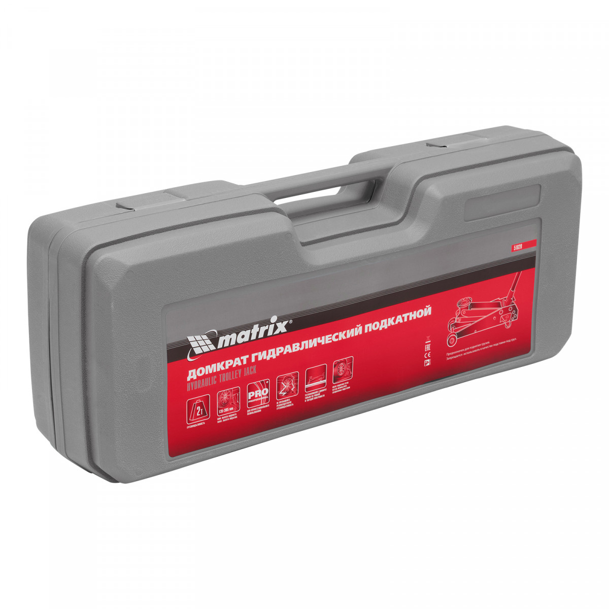 Домкрат гидравлический подкатной, 2 т, высота подъема 135-385 мм, в пластиковый кейсе Matrix