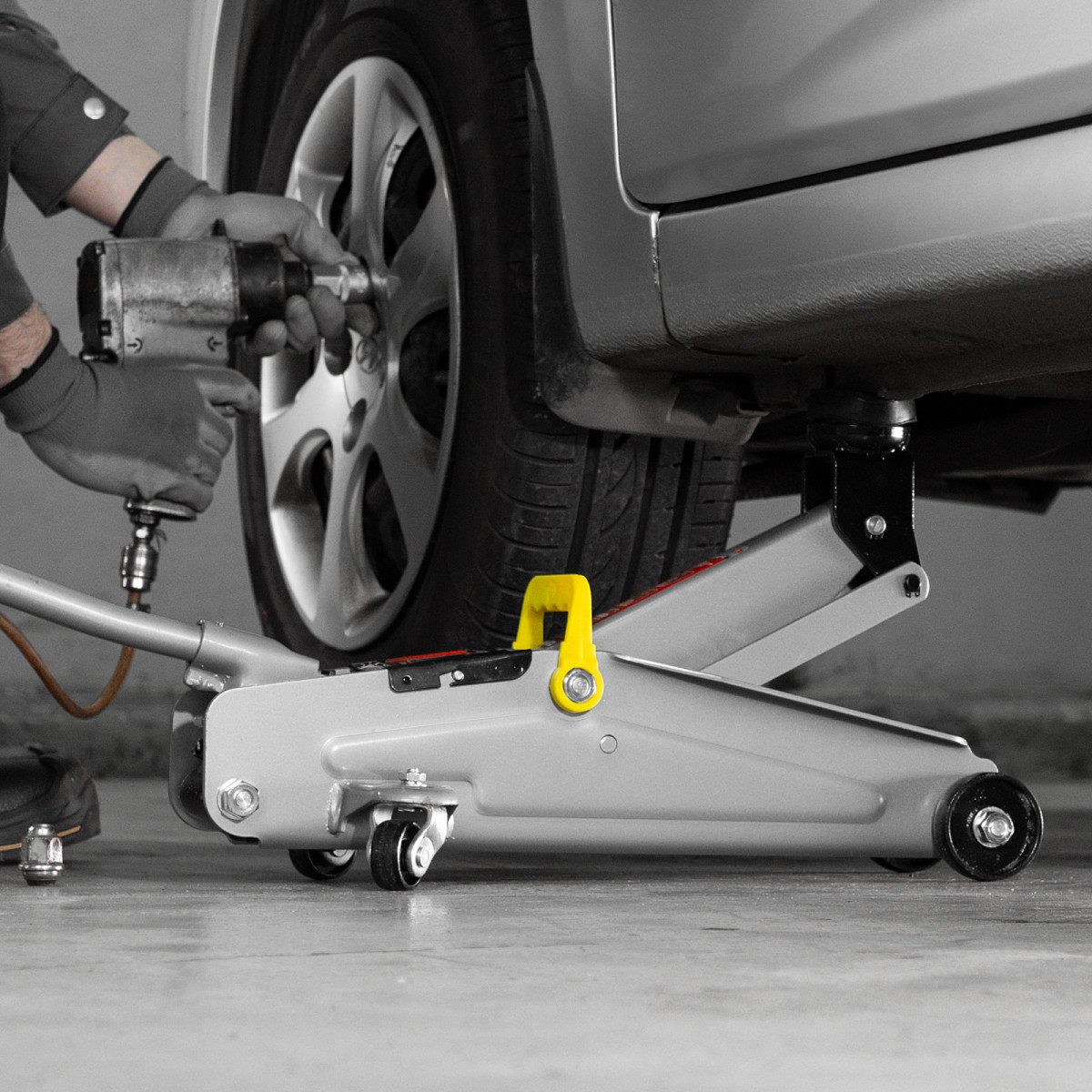 - Удобное хранение и транспортировка — домкрат поставляется в пластиковом кейсе.