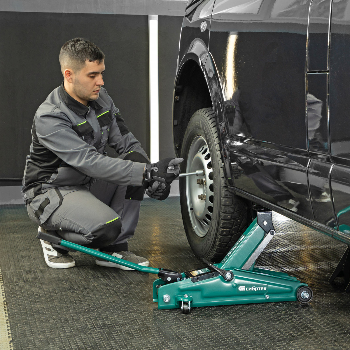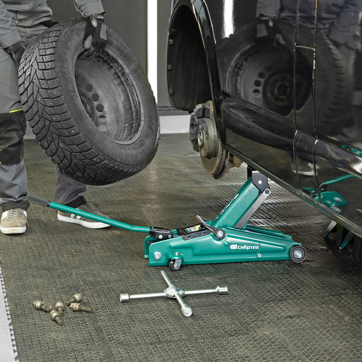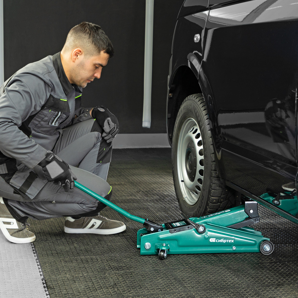 • Маневренность — благодаря поворотным колесам домкрат можно быстро подвести под груз.