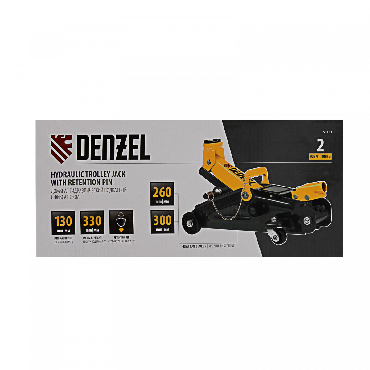 Домкрат гидравлический подкатной с фиксатором, 2 т, 130-330 мм Denzel