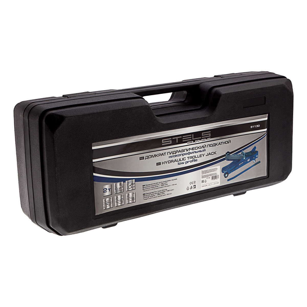 Домкрат гидравлический подкатной в пластиковом кейсе, 2 т, Low Profile, 80-380 мм Stels