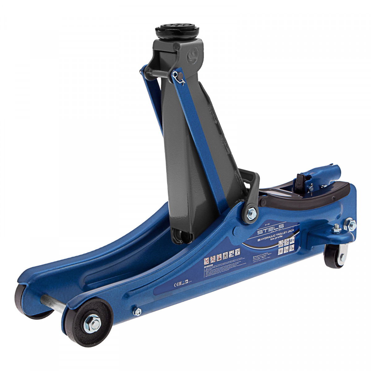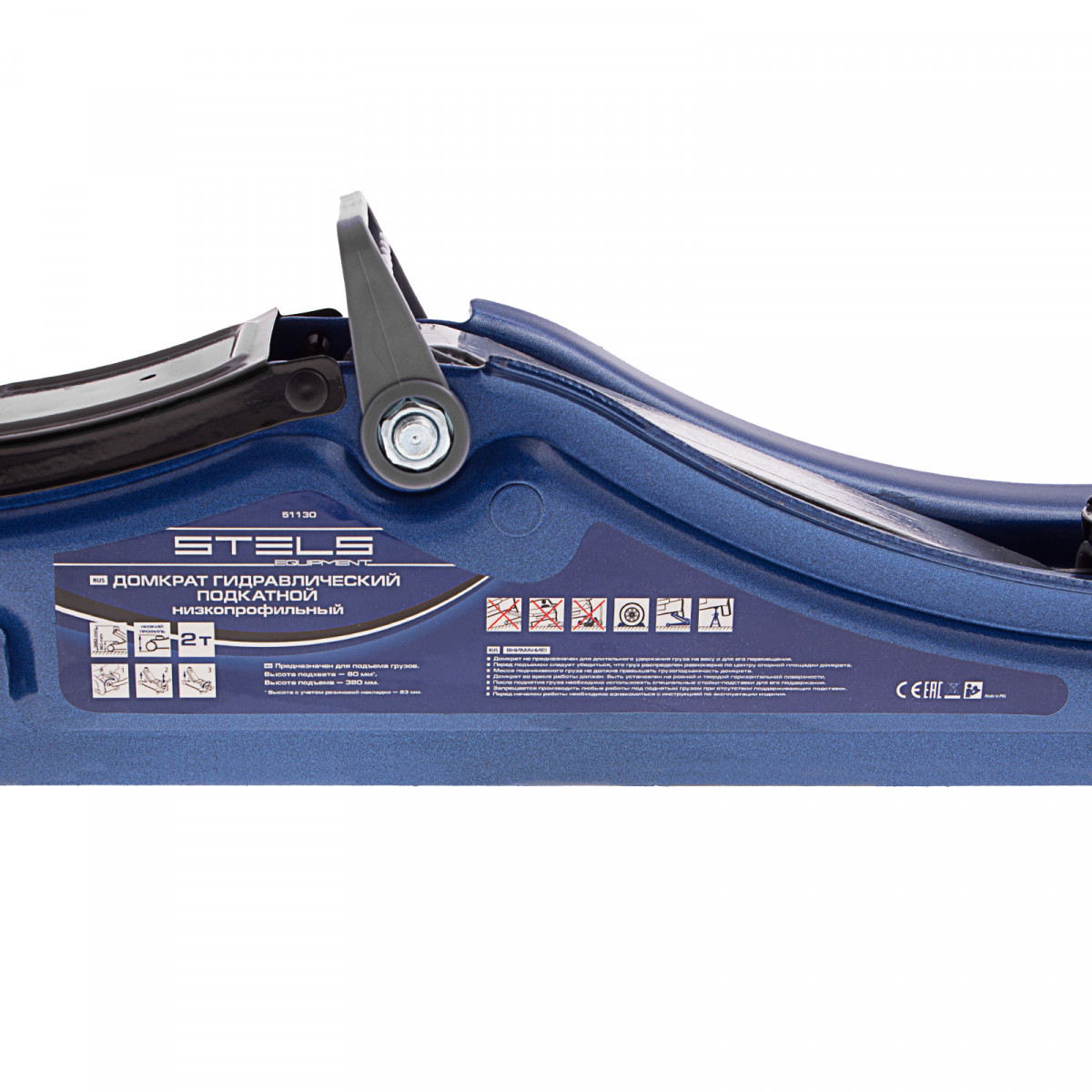 - Удобная эксплуатация — переставная ручка облегчает перемещение и выкатывание домкрата из-под груза.