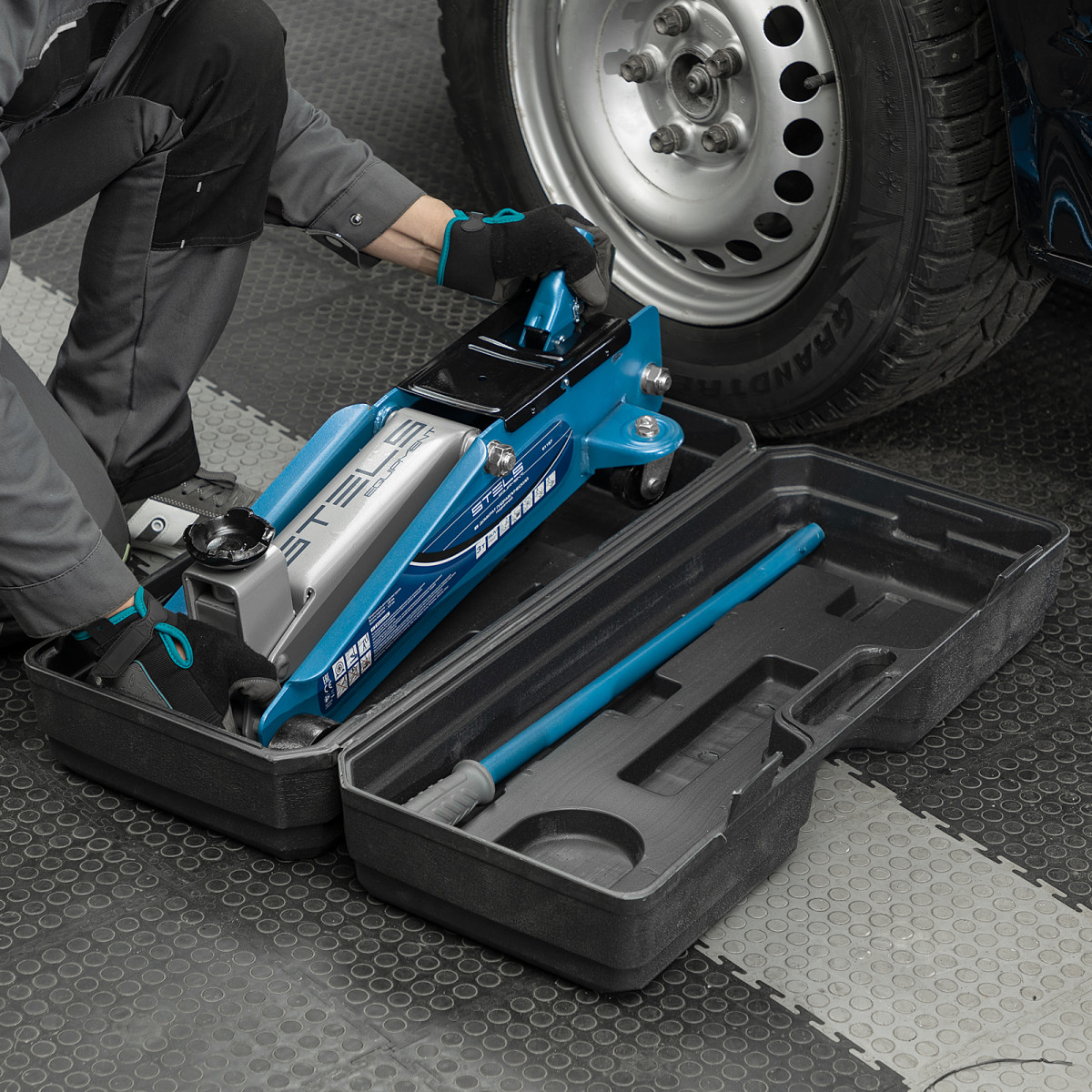- Удобное хранение и транспортировка — домкрат поставляется в надежном кейсе из ударопрочного пластика.