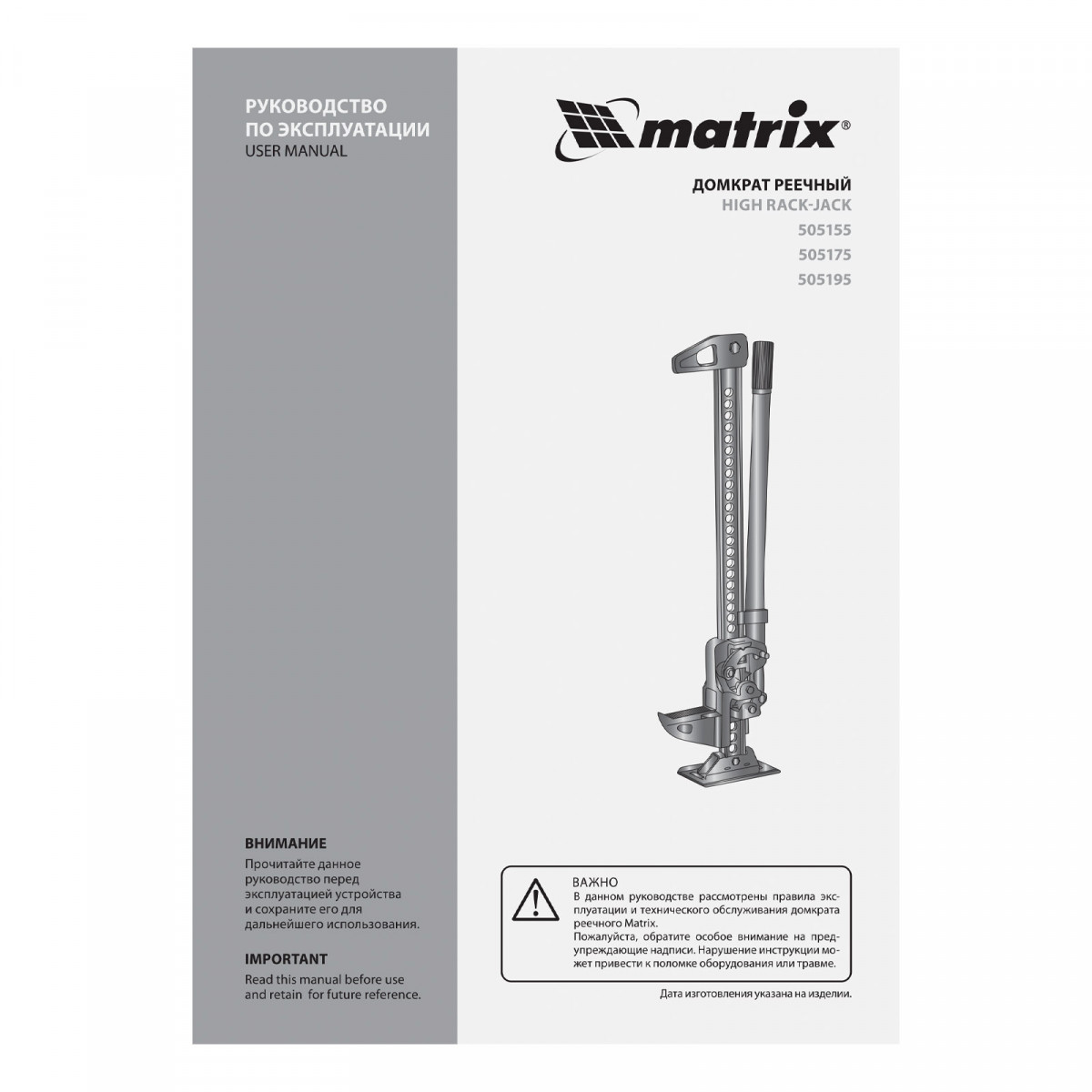 Реечный домкрат Matrix High Jack 505195 позволяет поднимать внедорожники и грузовики весом до 3 т на высоту 135-1315 мм. Пригодится во время ремонта автомобилей. Несущая рейка дополнена зацепной петлей, поэтому домкрат можно использовать как ручную лебедку или стягивающее устройство.