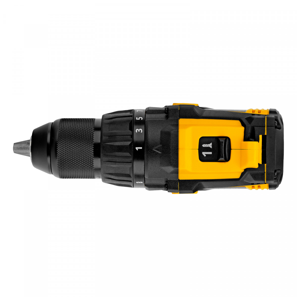 - Универсальность — дрель-шуруповерт совместима с любым Li-Ion аккумулятором и зарядным устройством единой платформы Denzel Battery System 18V.