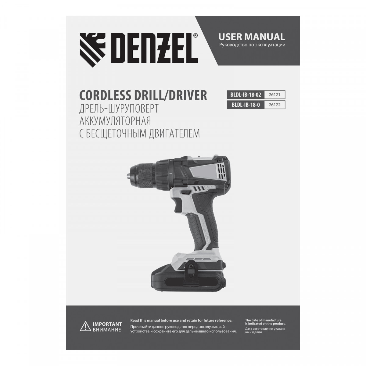 Дрель-шуруповерт аккумуляторная, бесщет. BLDL-IB-18-0, Li-Ion, 18 В Denzel