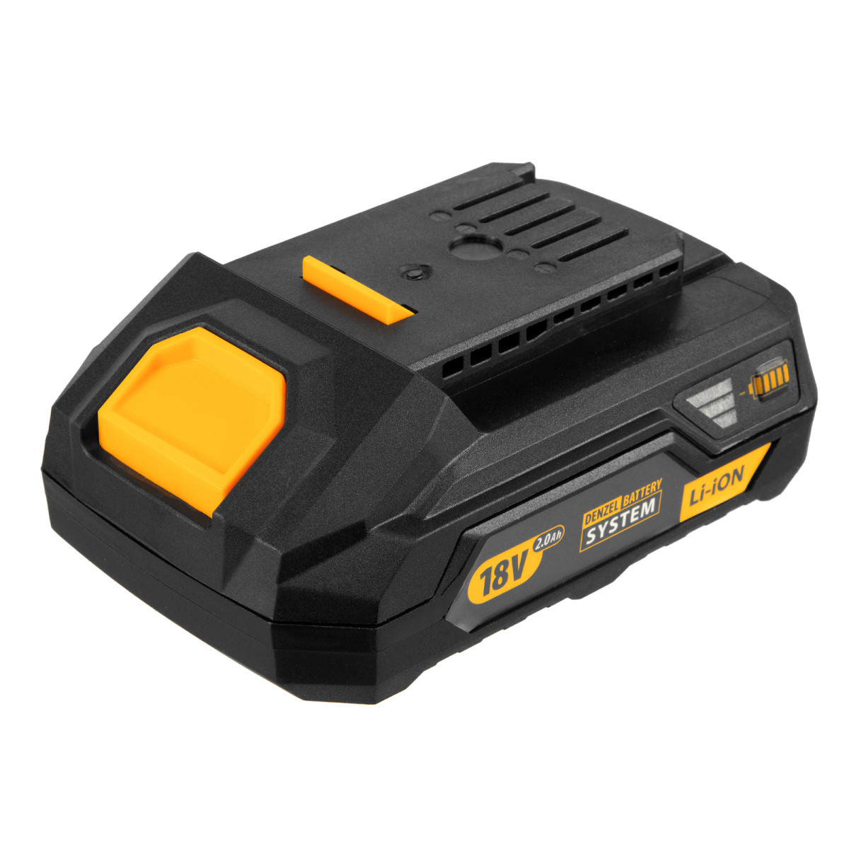 - Универсальность — аккумуляторные батареи Li-ion емкостью 2 Ач совместимы с любым инструментом из модельного ряда единой платформы Denzel Battery System 18V.