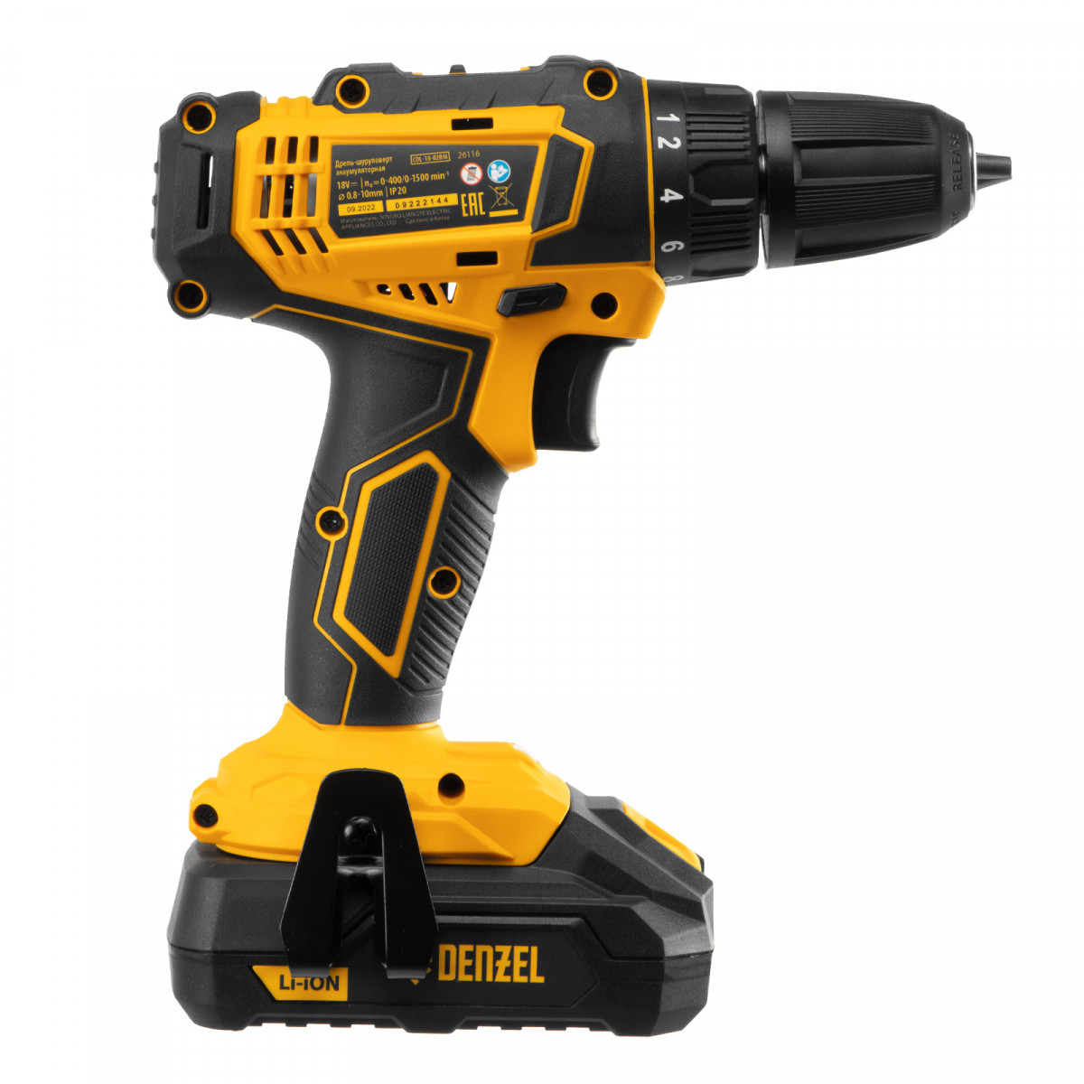 Дрель-шуруповерт аккумуляторная CDL-18-02BM, Li-Ion, 18 В, 2 аккумулятор Denzel
