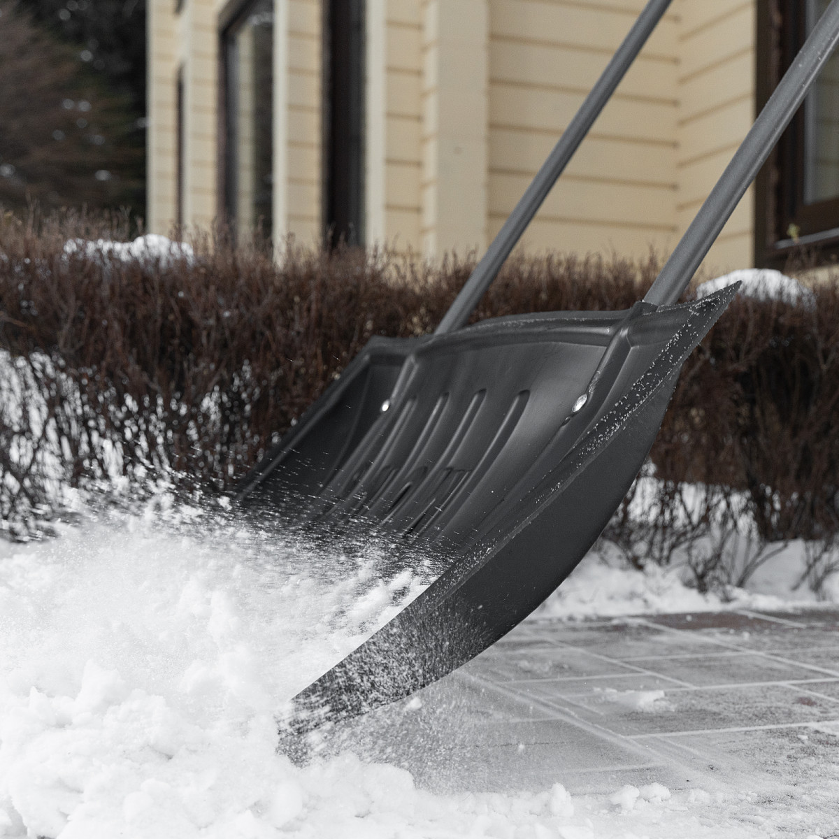 Пластиковый движок для уборки снега Сибртех 61594 размером 780 х 420 х 1140 мм, со стальной рукояткой, поможет очистить от снежных заносов придомовую территорию, пространство перед гаражом или дачный участок. Глубокий широкий ковш захватывает большое количество снега, сокращая продолжительность уборки. Удобная изогнутая рукоятка позволяет равномерно распределять усилия, снижая нагрузку на позвоночник.