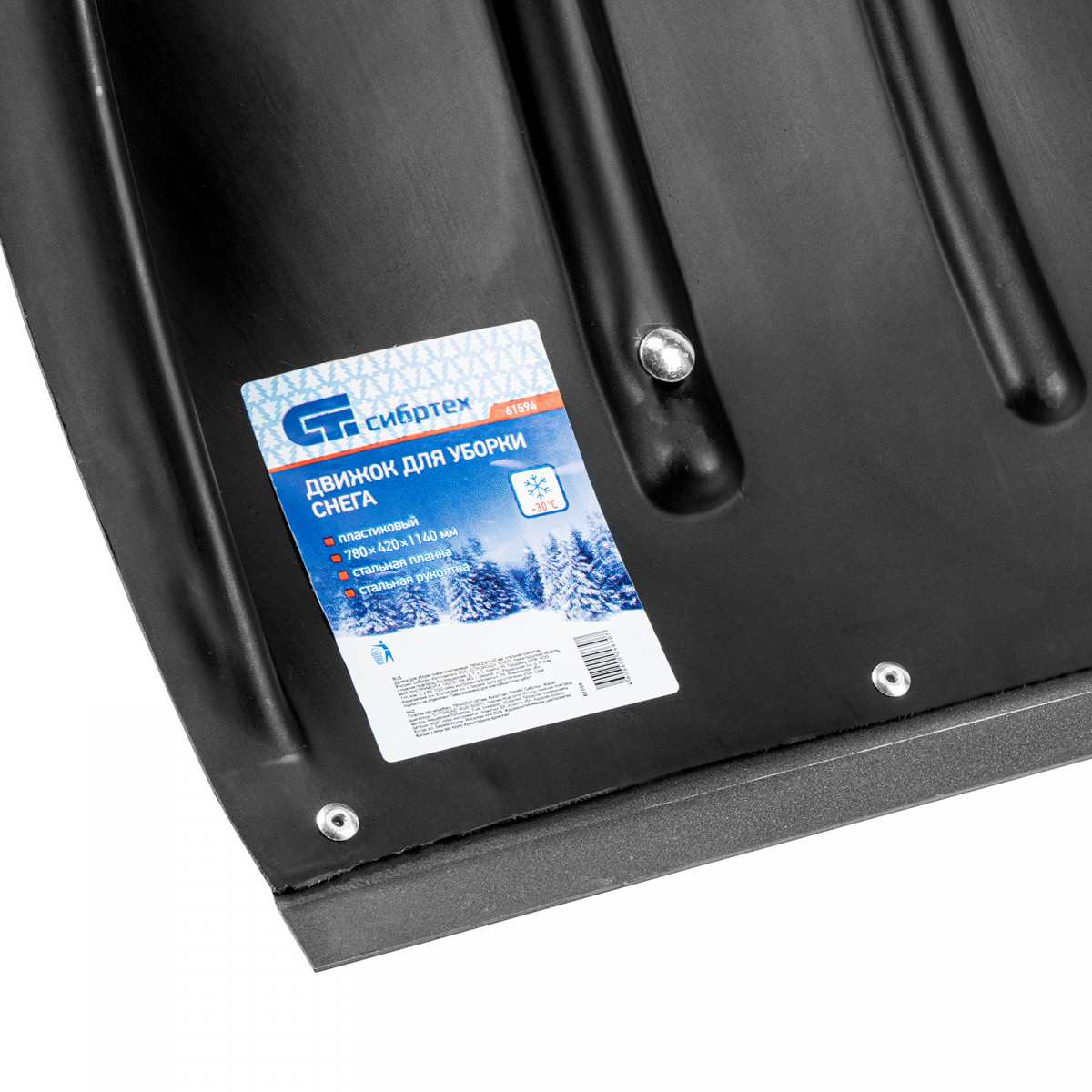 Движок для уборки снега пластиковый, 780 х 420 х 1140 мм, стальная рукоятка, Сибртех
