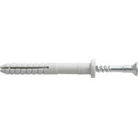 Гвоздевой дюбель имеет специальную цилиндрическую головку, которая не позволяет ему полностью уходить в просверленное отверстие.