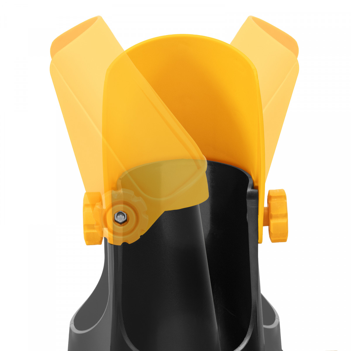 - Удобное управление — регулировка положения выпускного желоба и угла наклона дефлектора позволяет установить желаемое направление выброса снега и его дальность (до 6 м).