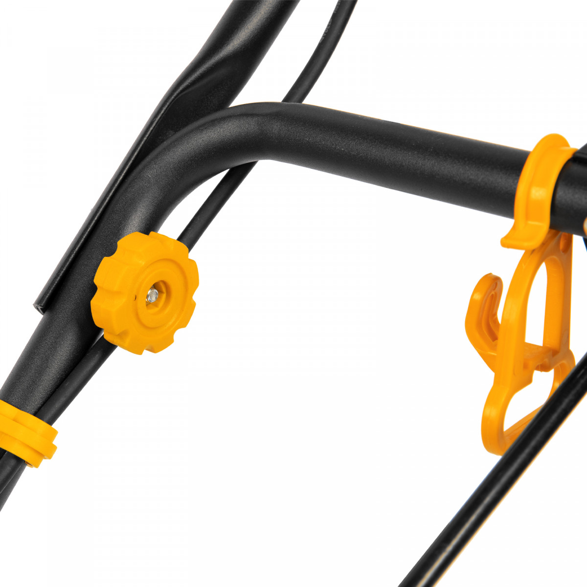 - Удобное перемещение — снегоуборочная машина имеет компактные размеры, на корпусе имеется ручка для транспортировки.