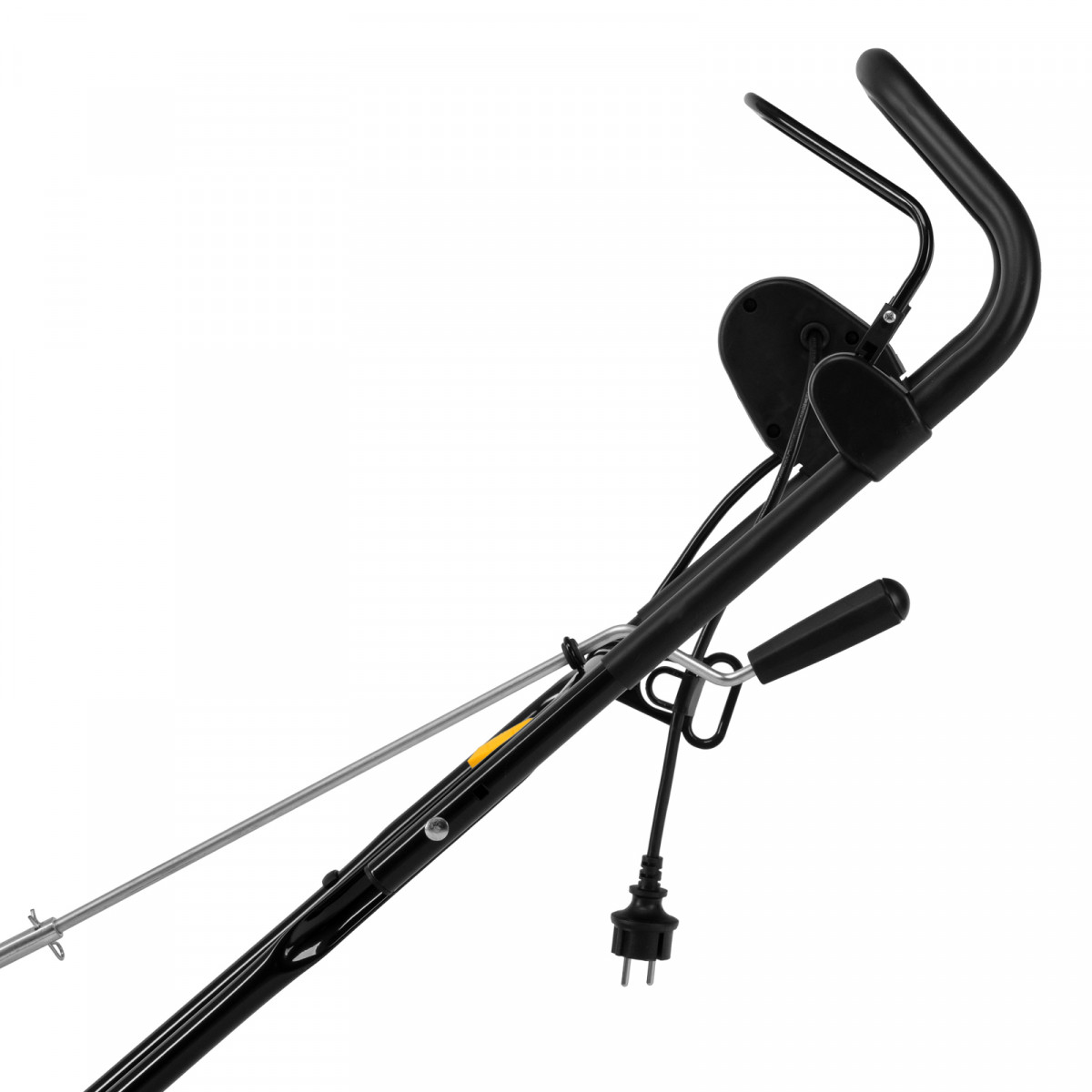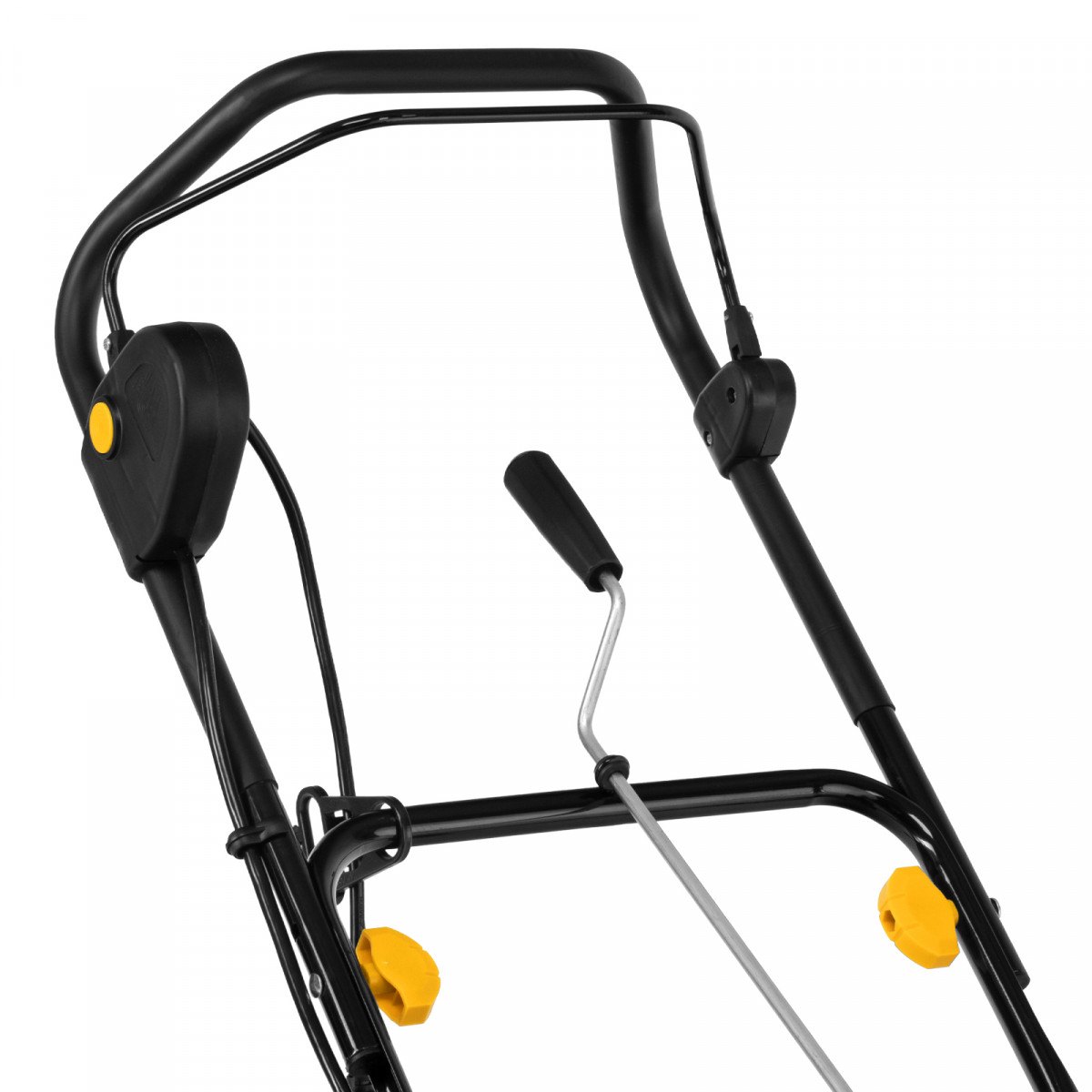 - Простая регулировка направления выброса снега — удобная рукоятка поворота желоба избавляет пользователя от необходимости наклоняться.