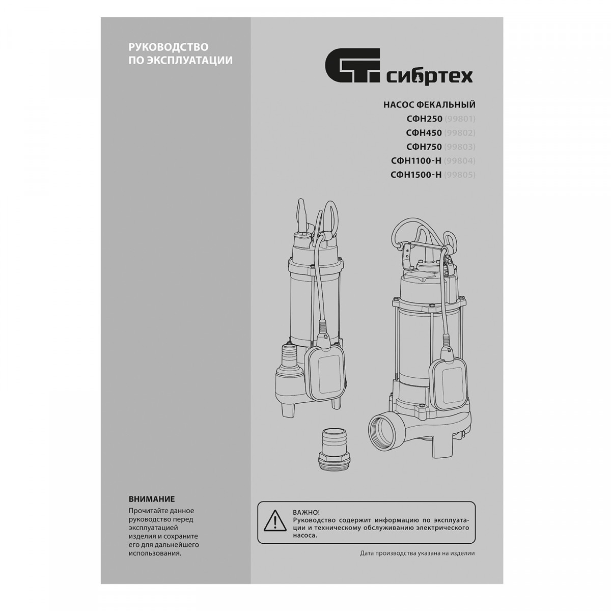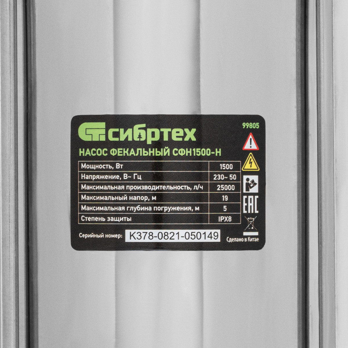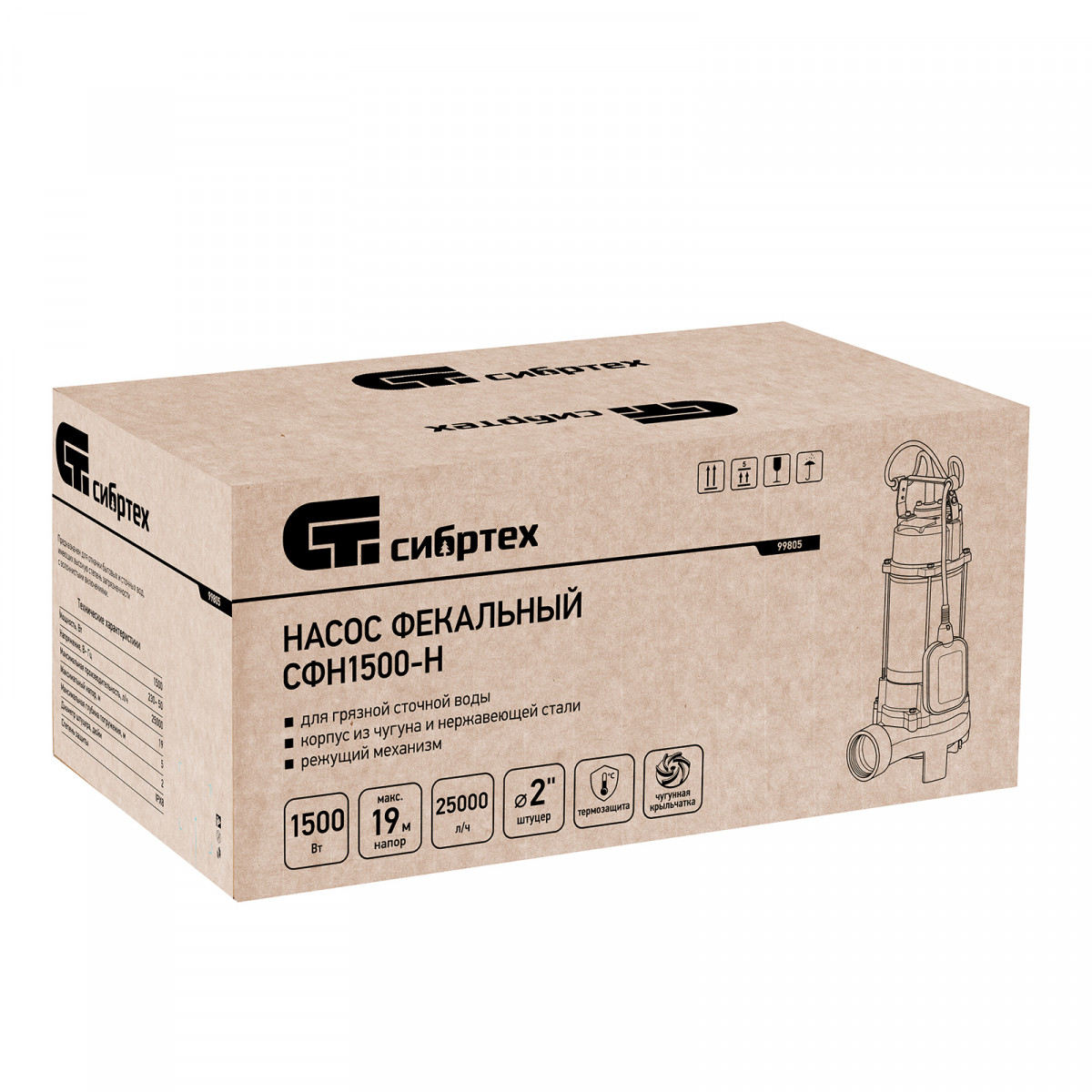 Фекальный насос СФН1500-Н, 1500 Вт, напор 19 м, 25000 л/ч, нож Сибртех