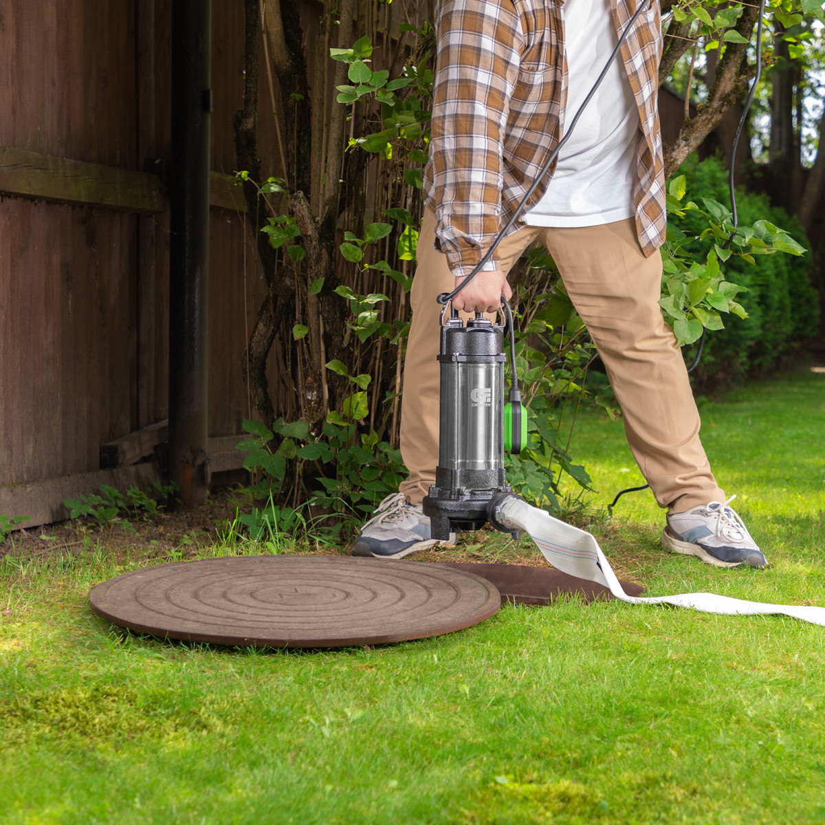 Фекальный насос Сибртех СФН1100-Н 99805 с ножом, мощностью 1500 Вт и производительностью до 25000 л/ч, обеспечивает напор 19 м и применяется для работы как с грязной, так и с чистой водой. Его можно использовать для откачки содержимого выгребных ям, емкостей, водоемов, канав, стоков и траншей или осушения затапливаемых помещений. Нож измельчает крупные частицы в воде, поэтому насос подходит для организации системы канализации на даче. Также он способен работать со стоками, в которых температура жидкости не превышает 35 градусов. Создаваемого напора достаточно для подачи воды в системы орошения с несколькими точками водоразбора. Диаметр штуцера для подключения шланга составляет 2 дюйма.