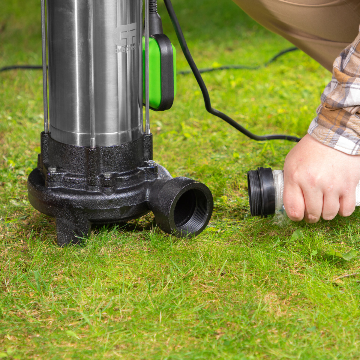 - Защита от сухого хода — поплавковый выключатель останавливает насос при падении уровня воды ниже допустимого.