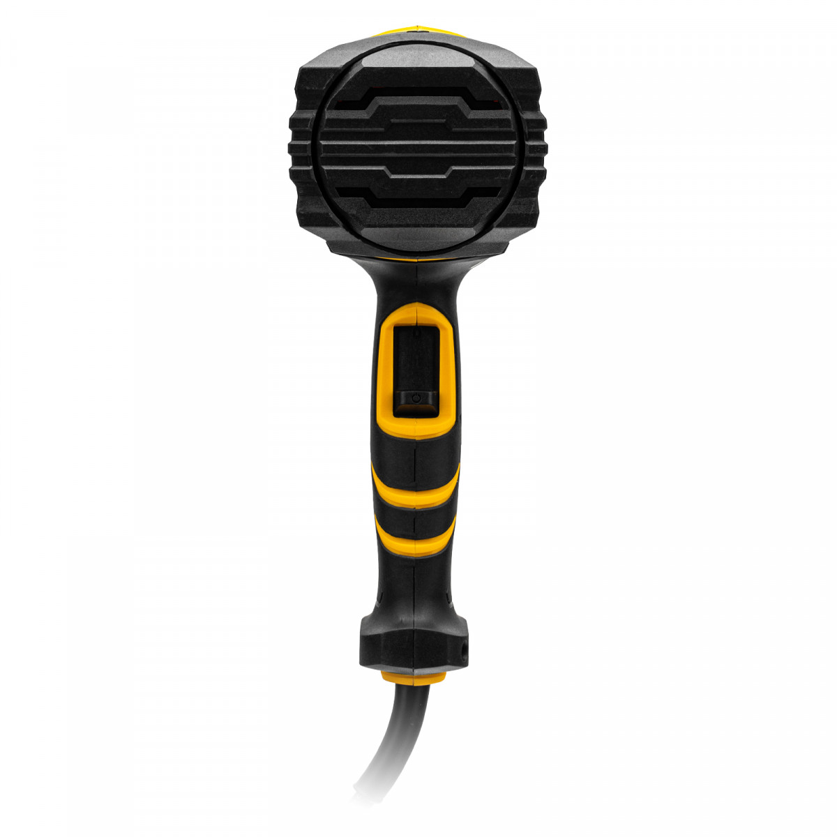 Фен технический Denzel HGH-2000 28002 мощностью 2000 Вт поддерживает 2 режима работы, обеспечивая стабильную производительность на уровне 300 или 500 л/мин. В зависимости от выбранного режима рабочая температура составляет 350 °C или 600 °C. Фен позволяет просушивать и снимать лакокрасочные покрытия, производить сварку пластиковых изделий, паять и размораживать трубы, проводить дезинфекцию поверхностей с помощью потока горячего воздуха, а также решать множество других задач.