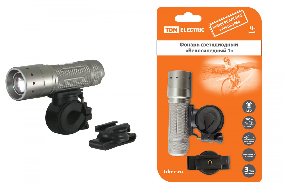 Фонарь светодиодный "Велосипедный 1" IP54, 1 LED 5 Вт (CREE), 36 лм/Вт, 3*AAA TDM