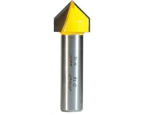 Фреза пазовая гальтельная ф19 мм V-образная 90 градусов хвостовик 12 мм Энкор 9304 используется для декоративной резьбы на столярных изделиях и для обработки кромки. Эти фрезы делают чистый и аккуратный надрез панелей, срезание граней и великолепную гравировку. Фреза имеет V-образную форму. С ее помощью можно выполнить декоративную резьбу и осуществить обработку кромки. Данная фреза находит широкое применение при обработке мебели. В случае поломки или затуплении фрезы ее необходимо немедленно заменить, что сделает работу наиболее комфортной и безопасной.