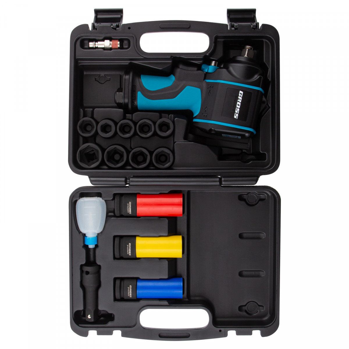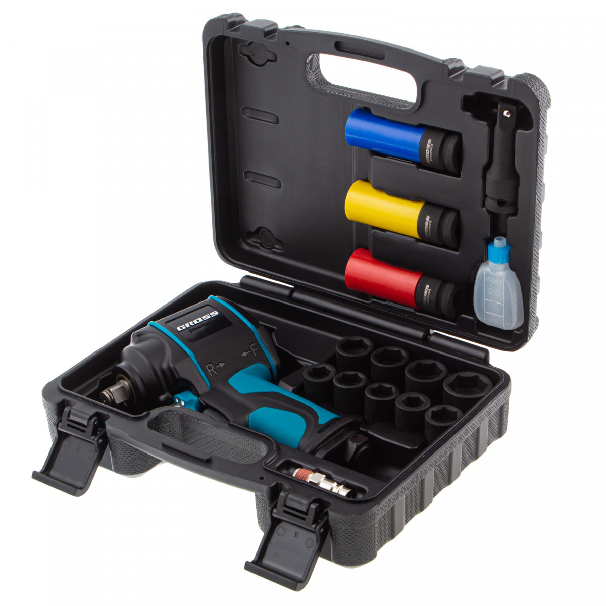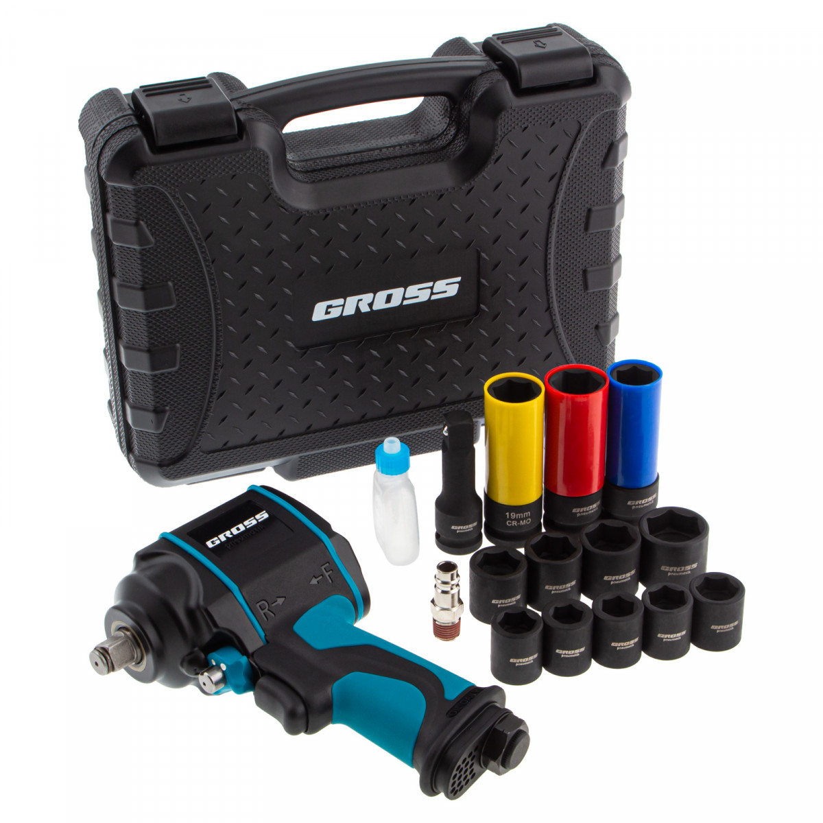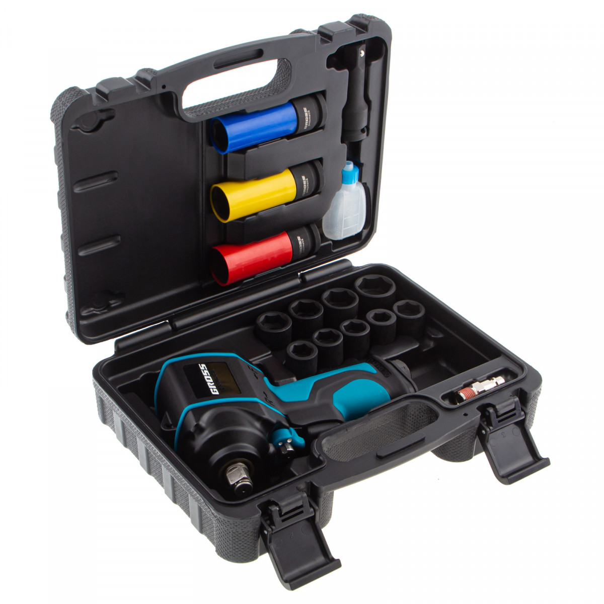 Гайковерт пневматический ударный G985K2, 1/2, 610Нм 9000 об/мин, с набором 17 предметов Gross