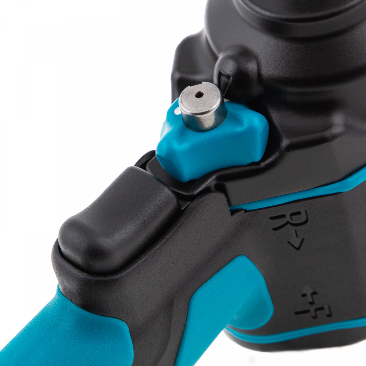 - Комфортность использования — выходное отверстие находится в нижней части рукоятки, поэтому отработанный воздух не попадает на мастера.
