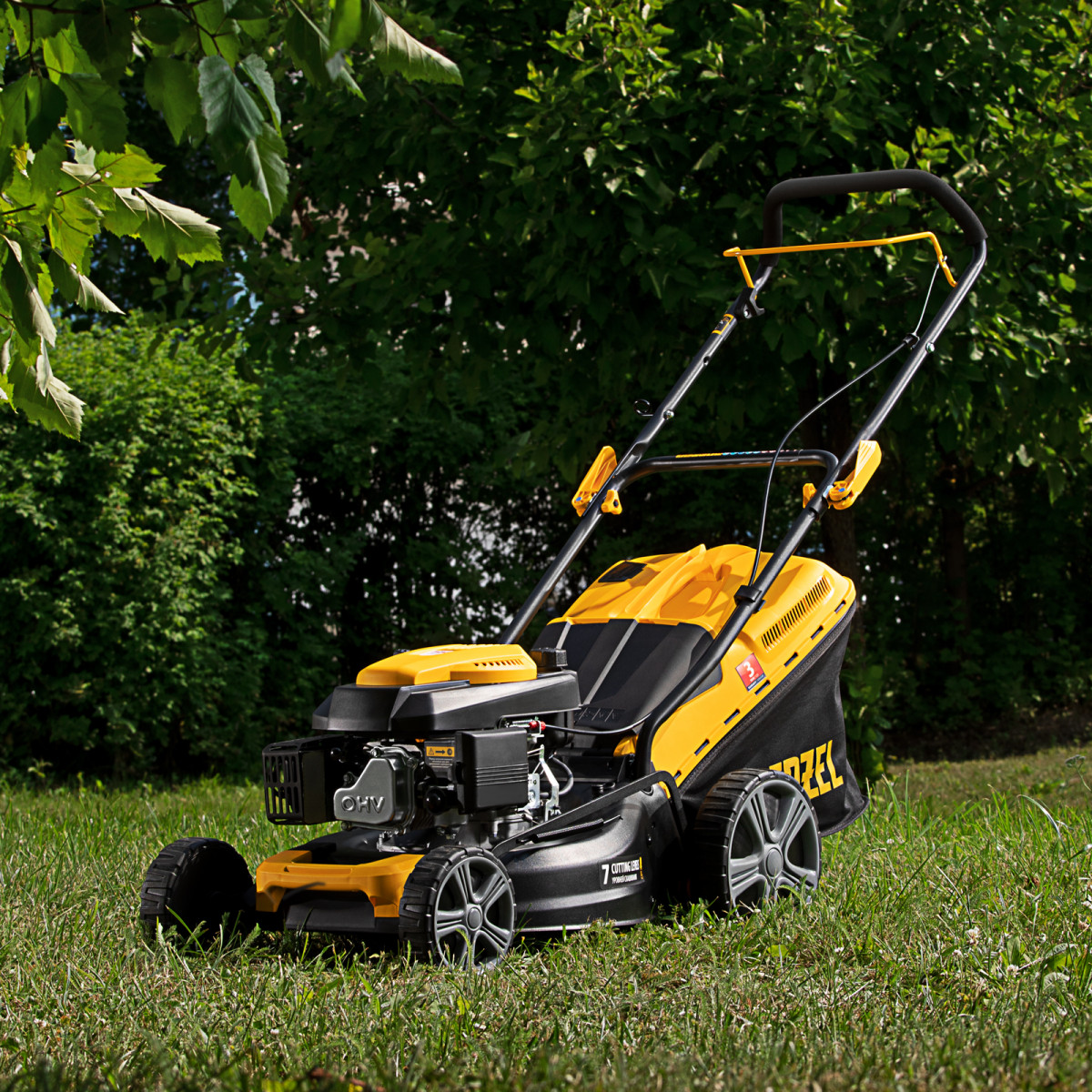 - Автономность — бензиновая газонокосилка не привязана к электросети, поэтому может работать в отдаленных участках сада.