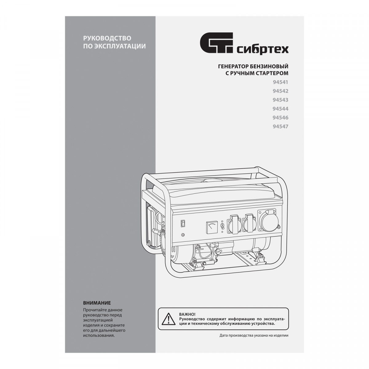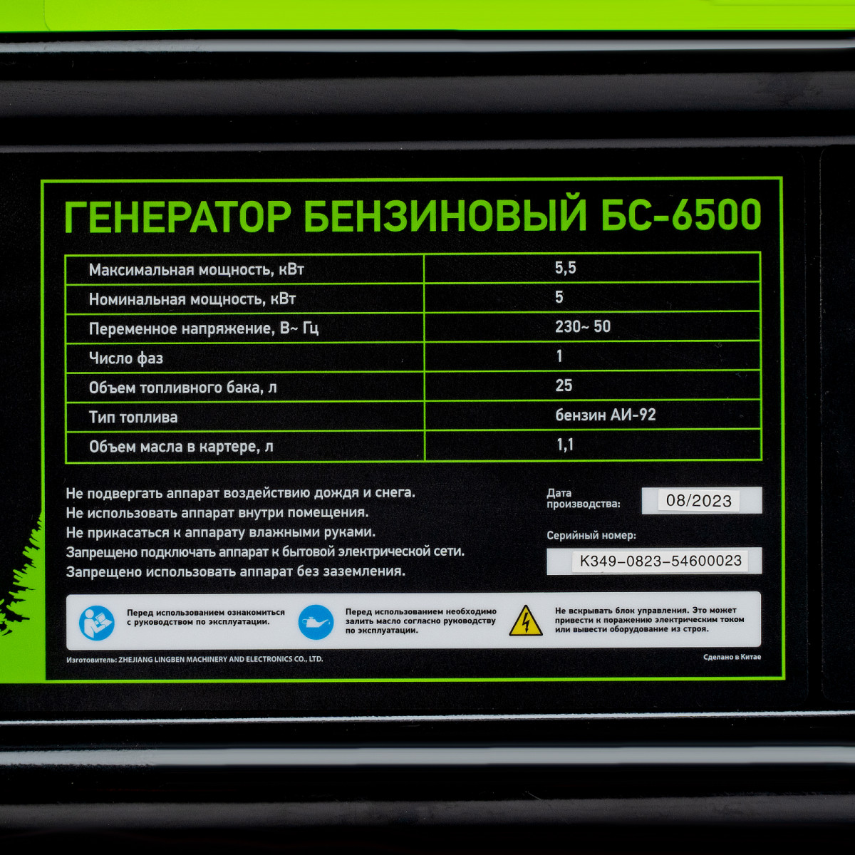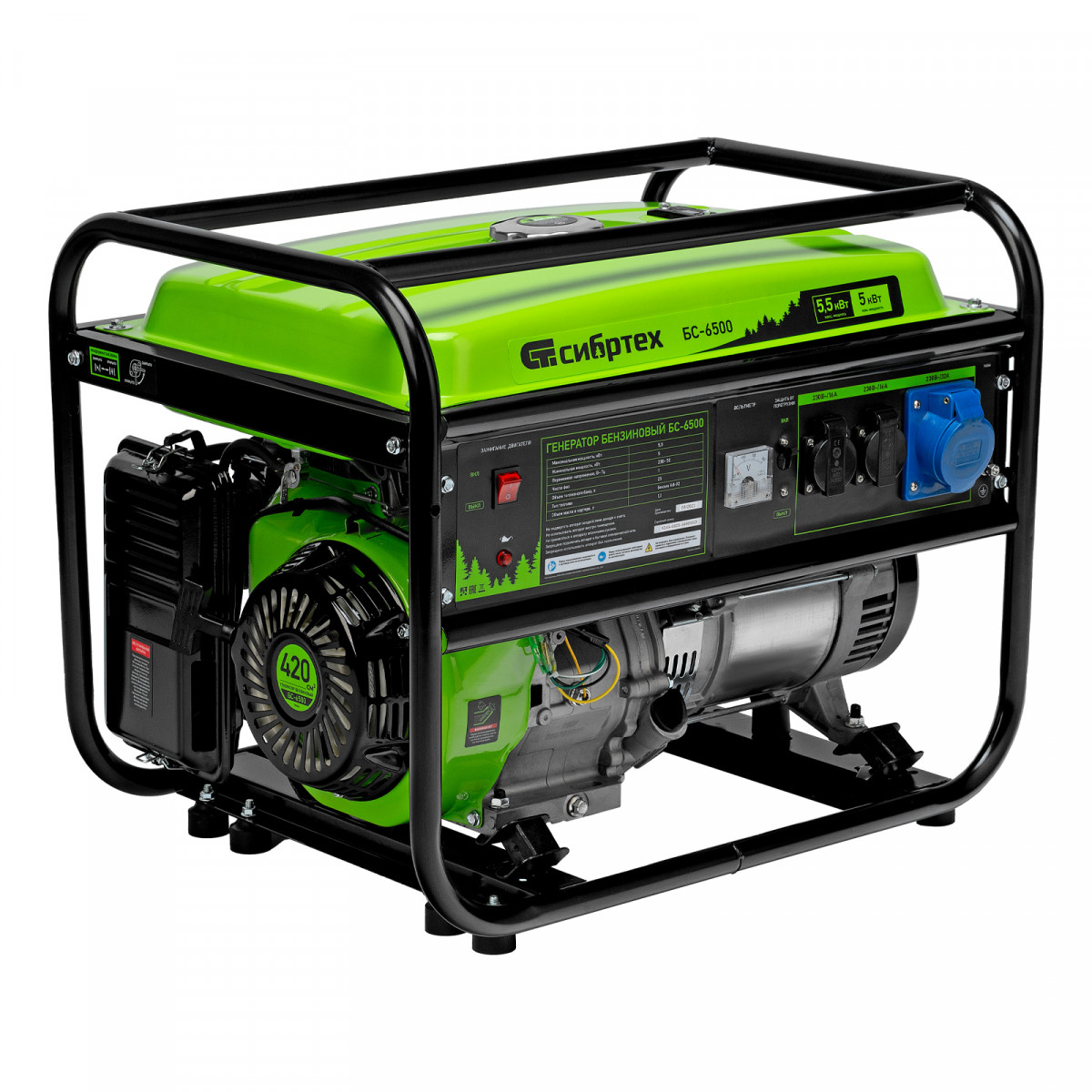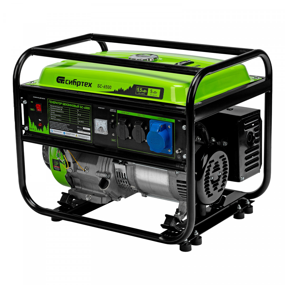 Генератор бензиновый БС-6500, 5.5 кВт, 230В, четырехтактный, 25 л, ручной стартер Сибртех