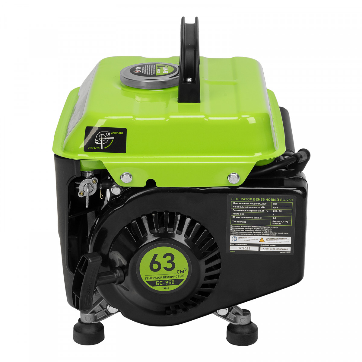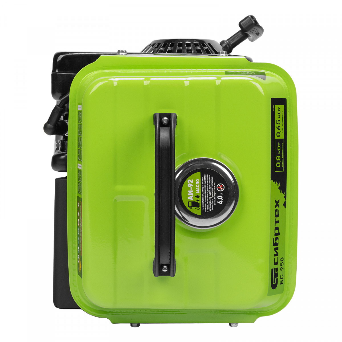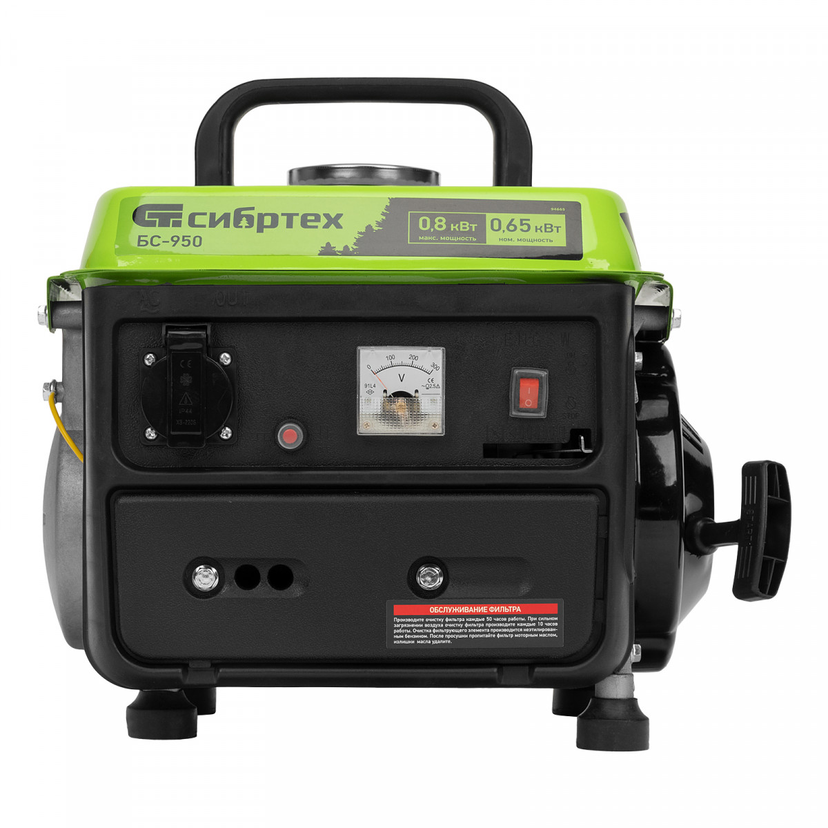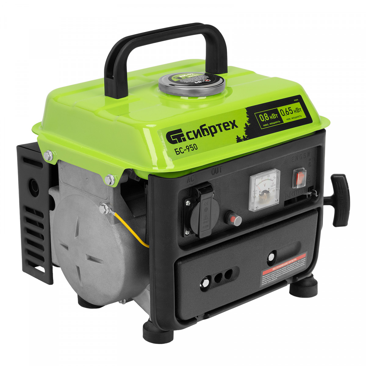 Генератор бензиновый БС-950, 0.8 кВт, 230 В, 2-х тактный, 4 л, ручной стартер Сибртех