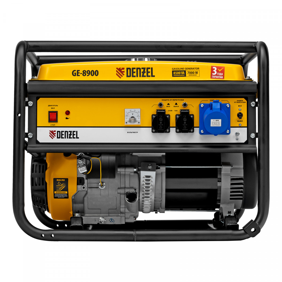 Генератор бензиновый GE 8900, 8.5 кВт, 220 В/50 Гц, 25 л, ручной старт Denzel