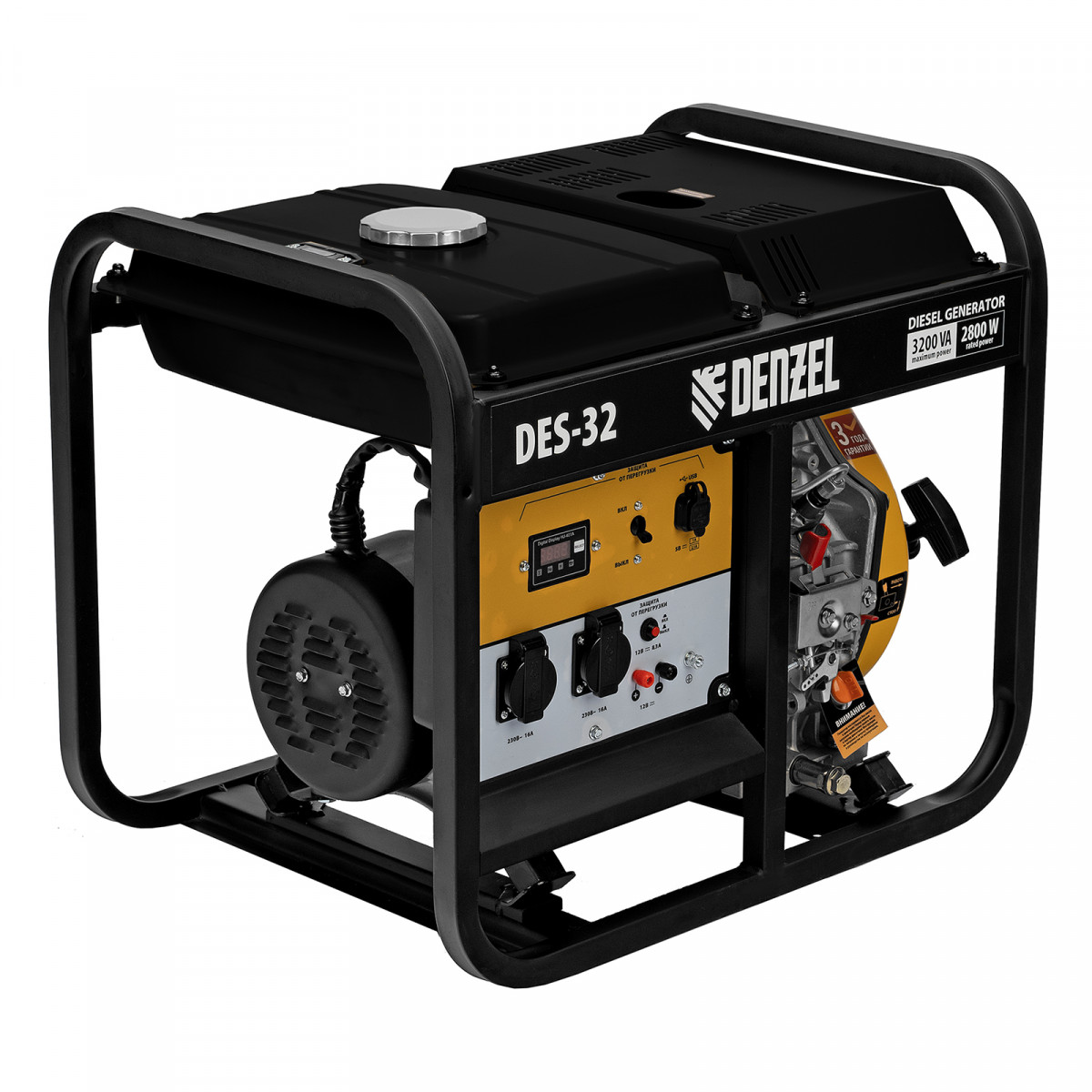 Генератор дизельный DES-32, 3,2 кВт, 230 В, 11 л, ручной стартер Denzel